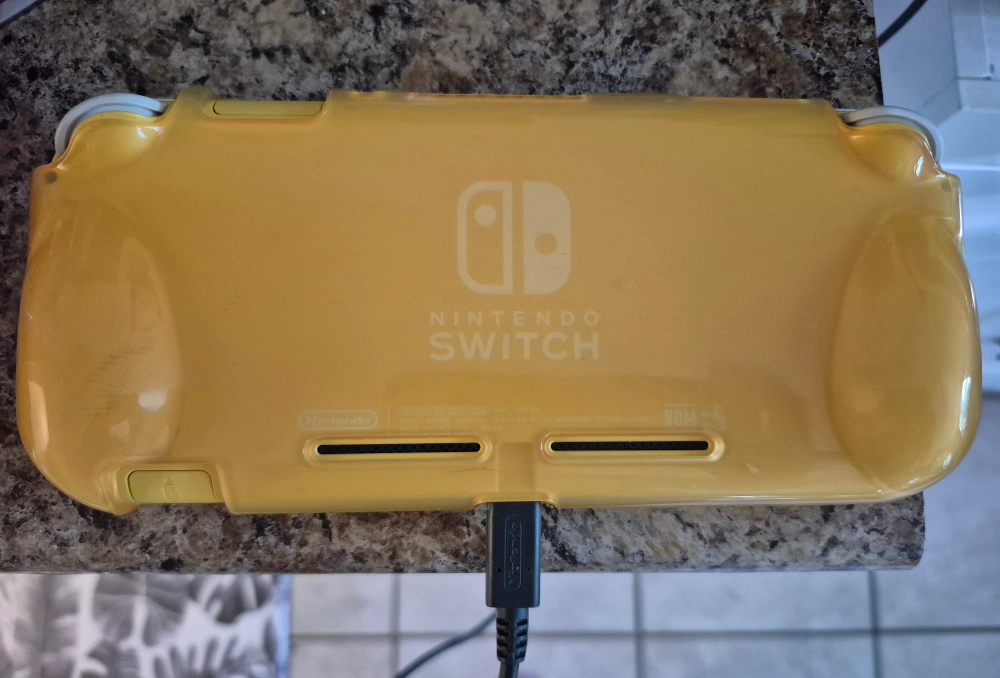 Yellow handheld console, in great shape. Just missing the left origanal grip but comes with an extra pair. Comes with protective case. Does not come with any games. Will be factory reset before picked up. It is a great way to unwind and enjoy some games after a long day.