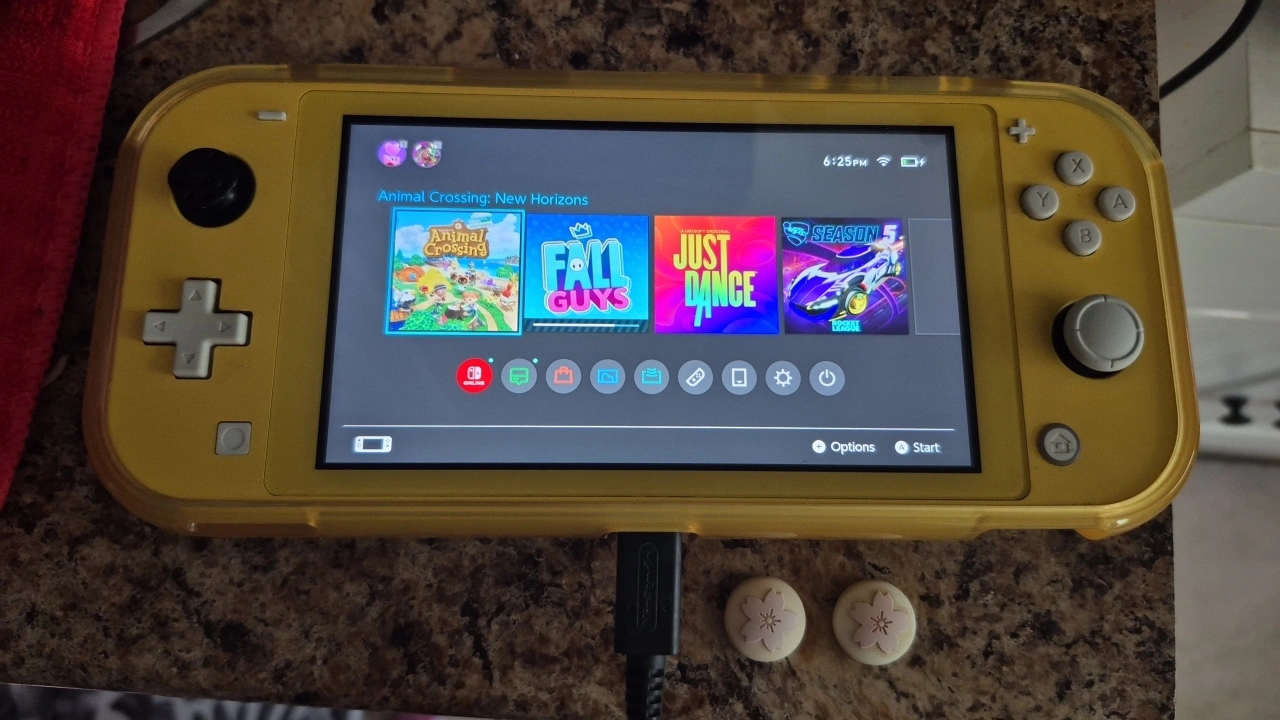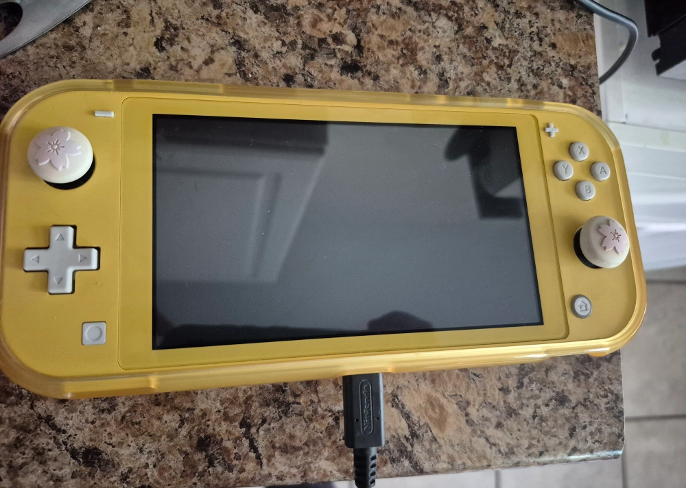 Yellow handheld console, in great shape. Just missing the left origanal grip but comes with an extra pair. Comes with protective case. Does not come with any games. Will be factory reset before picked up. It is a great way to unwind and enjoy some games after a long day.