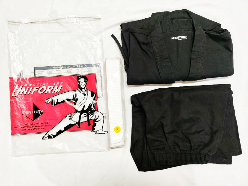 47Selling a martial arts uniform. Includes a jacket, pants and a white belt.