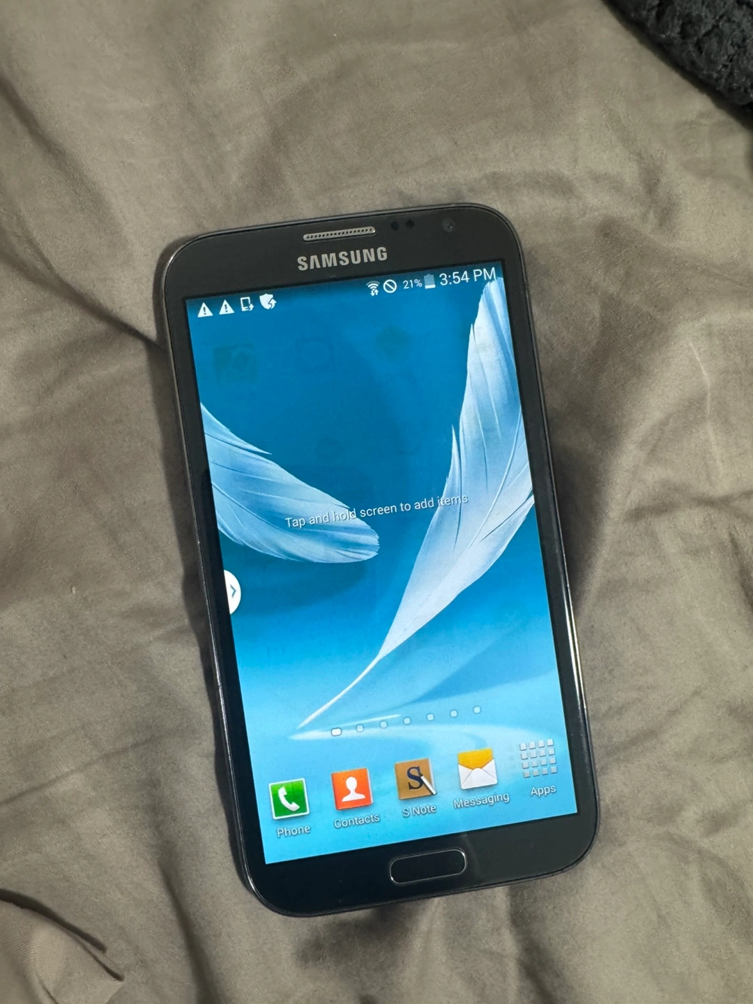 A smart device in good condition. Front screen displays multiple applications. Features a sleek design. This device would be perfect for entertainment needs.