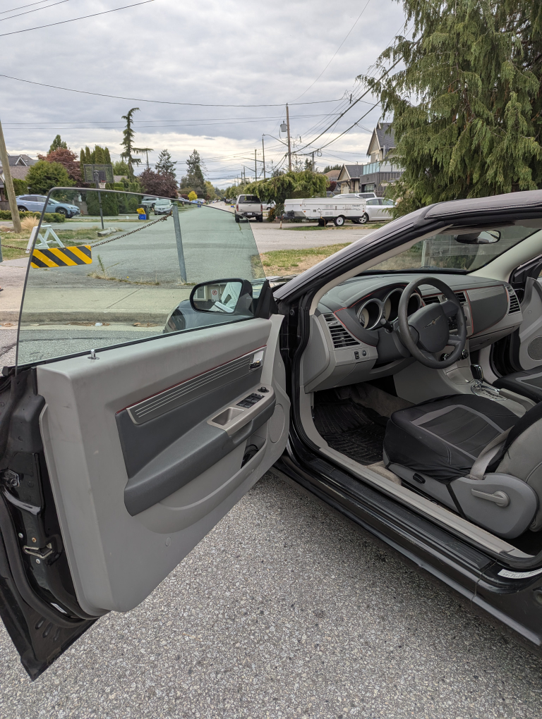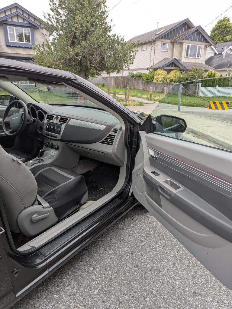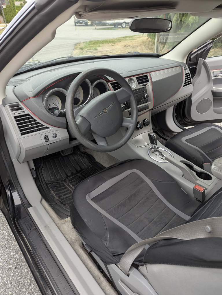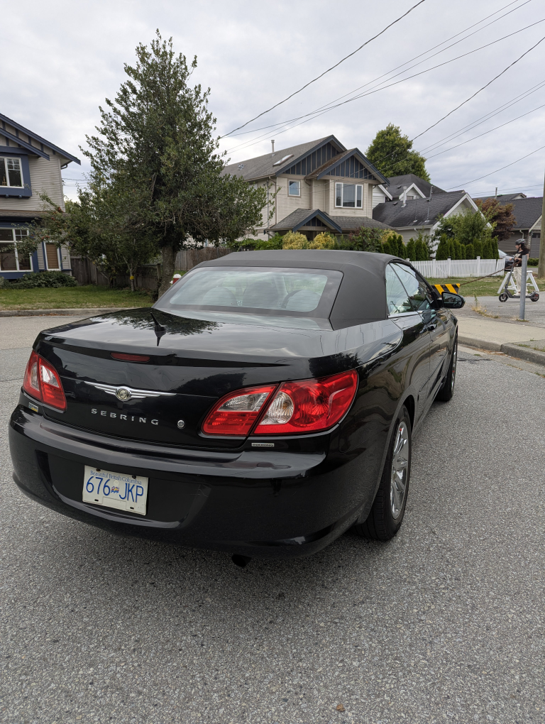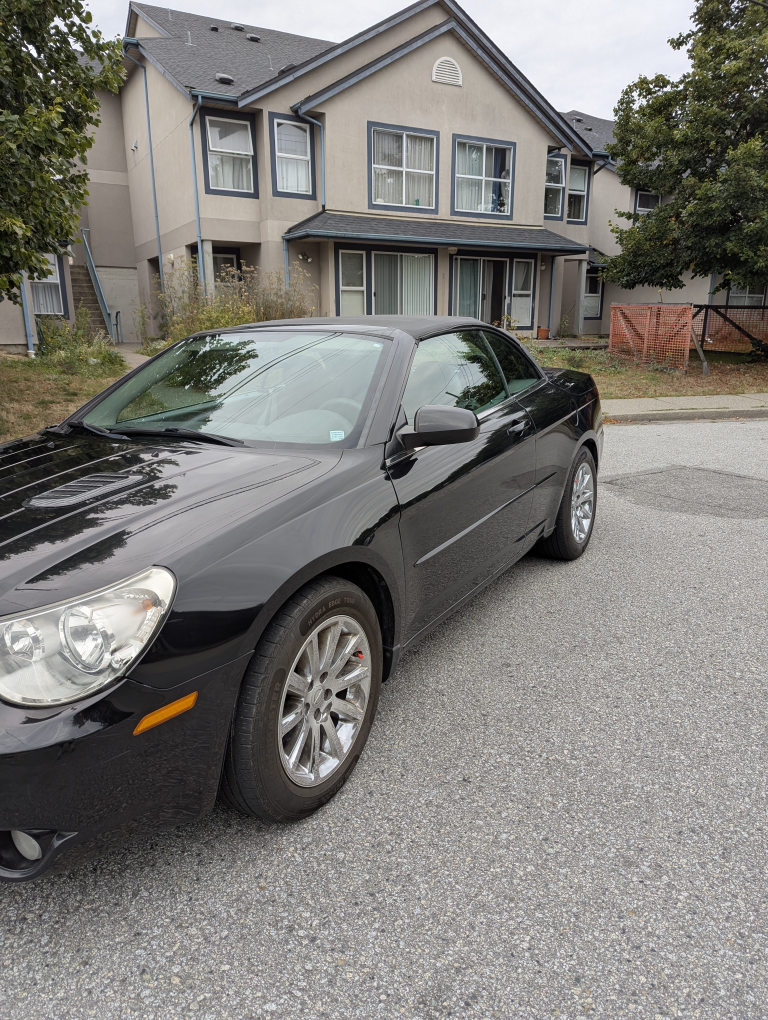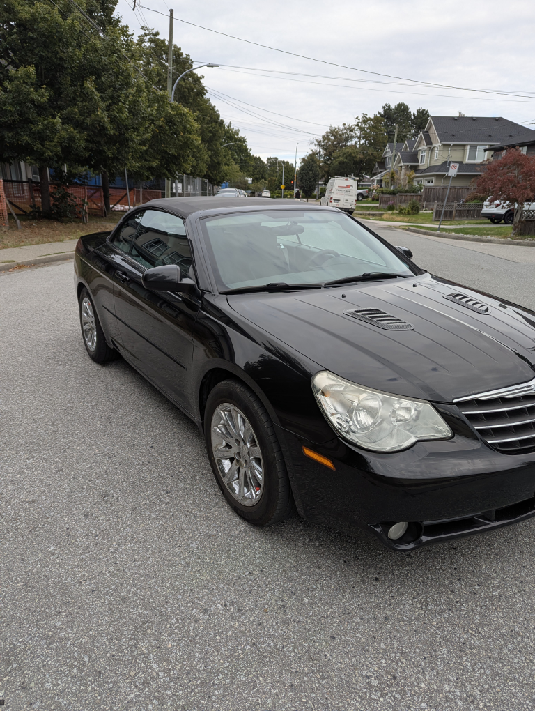 Selling a Chrysler Sebring convertible. It's a sleek black colour and in good condition for its age. Perfect for cruising around town with the top down!