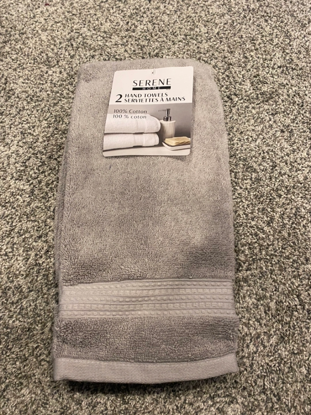 BRAND NEW Serene Home hand towels and washcloths. 2 hand towels, 4 washcloths. Thick and fluffy, light grey color. Asking $5 for both, cash only. Comes from pet and smoke-free home. Available for pickup in Warman or Saskatoon.