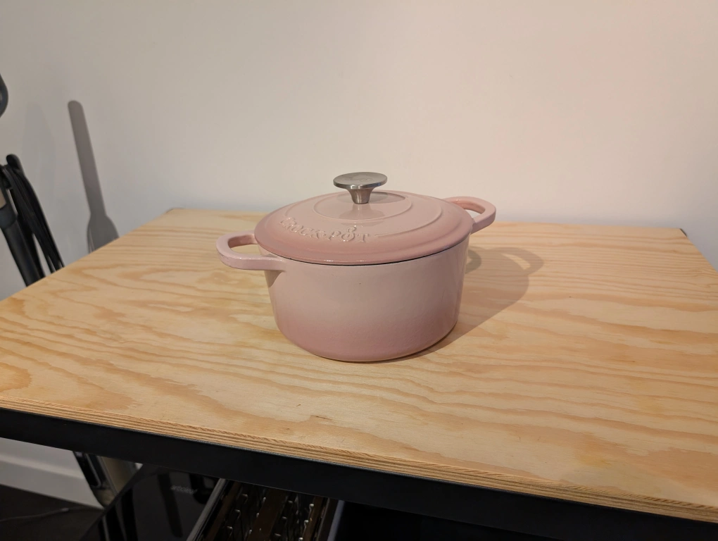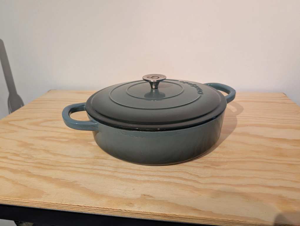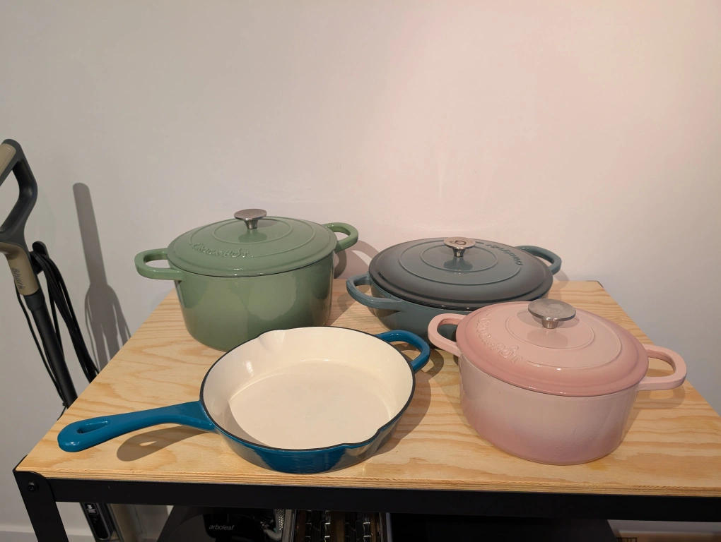 398Whole set - Teal Skillet - Pistachio 7 Quart Dutch Overn - Slate Grey 5 Quart Braiser - Blush Pink 3 Quart Dutch Oven