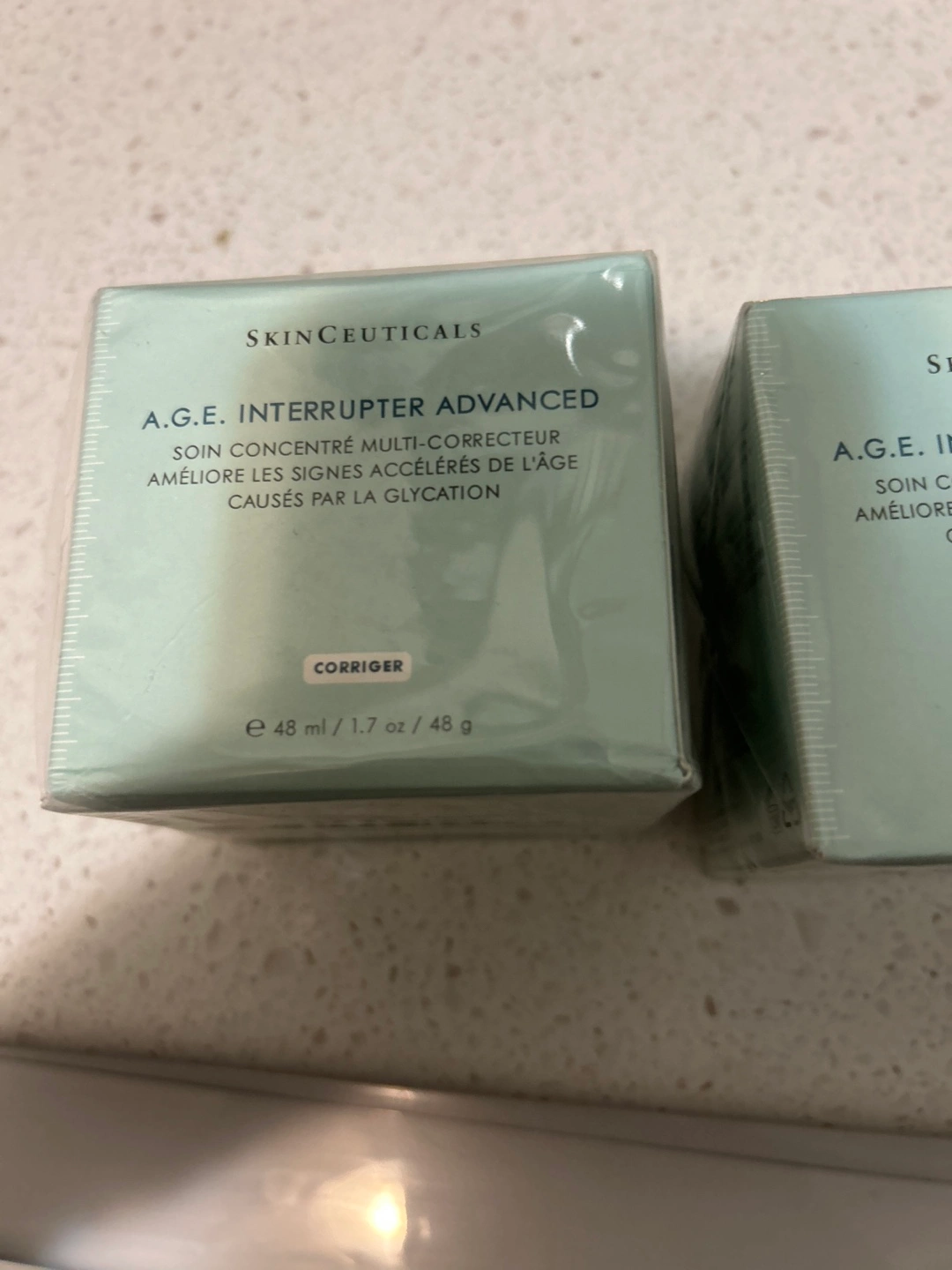 Comes in a box with a light green design. Reads A.G.E. Interrupter Advanced. It would be a great self-care addition to your daily routine.