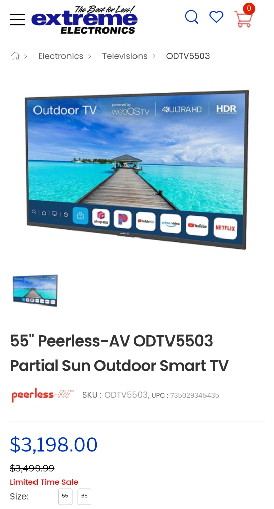 55" Peerless-AV ODTV5503 Partial Sun Outdoor Smart TV