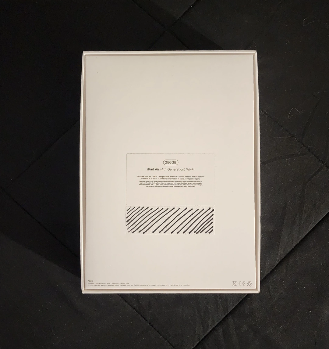 Pristine condition box. iPad Air (4th Generation). Comes with original manuals and stickers and carrying bag from Apple store. Perfect for reselling.