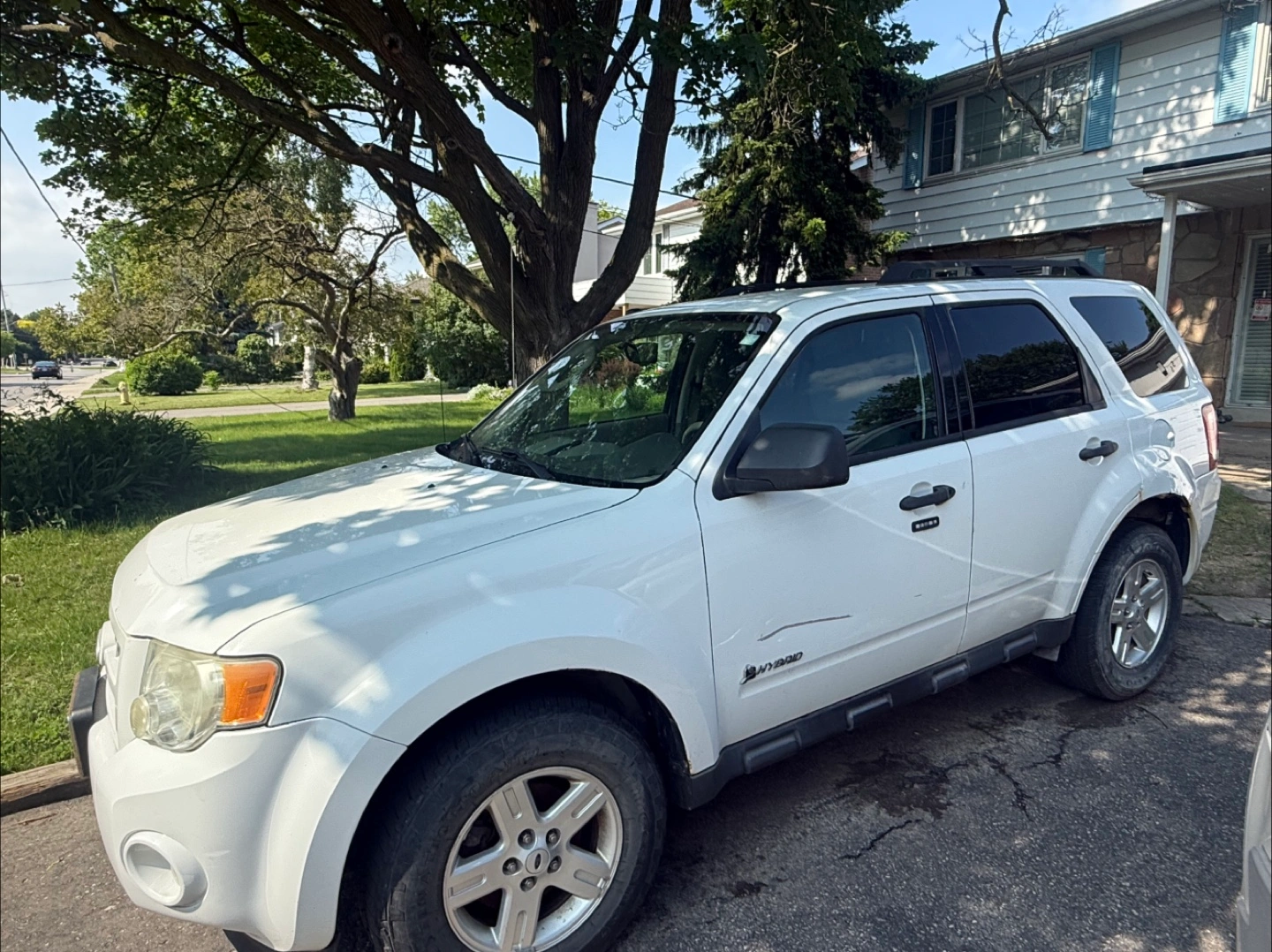 The car has a white exterior. Interior seats are grey. The dashboard has multiple warning lights illuminated. Perfect for taking long relaxing drives.