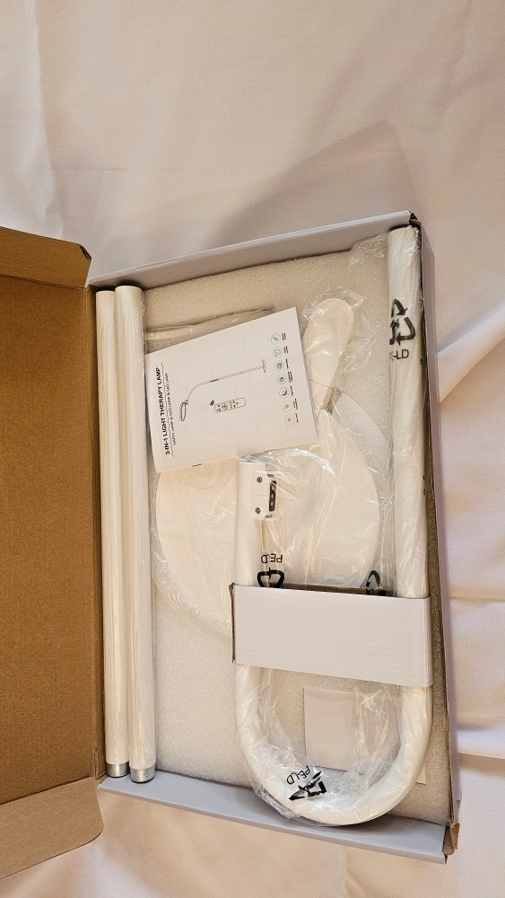 Brand new in the box. Light therapy lamp. Features timing function, smart touch screen, and remote control. You can use it to help brighten up those long winter days and improve your mood.