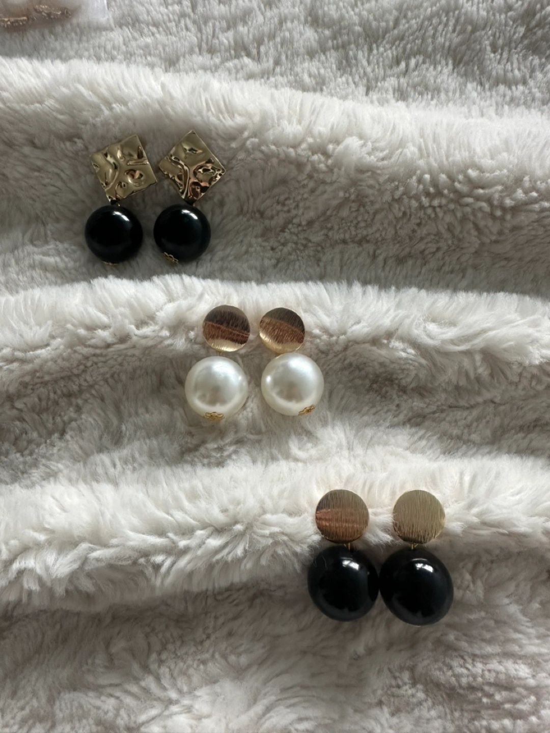 A collection of various accessories, including several pairs of earrings and a bracelet. Some earrings have a gold finish. These would be great additions to a wardrobe.