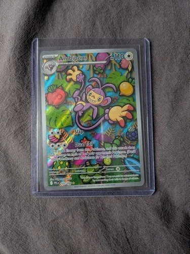Explore the world of Pokémon TCG with the Ambipom 107/094 from the Me02: Phantasmal Flames set, featuring a stunning holo finish that catches the eye of collectors and players alike. This card showcases the captivating Phantasm creature/monster type in vibrant detail, adding a mystical touch to any collection or competitive deck. With its unique abilities and striking artwork, this Ambipom card is a must-have for enthusiasts seeking to enhance their gameplay or showcase. Delve into the intricate design and let it shine in your assemblage of Pokémon trading cards.