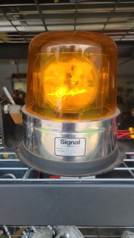 FOR SALE IS OUR LIKE NEW SIGNAL 4 BULB ROTATING AMBER LIGHT. OUR LIGHT FEATURES A SWIVEL MOUNTING BRACKET FOR DUMP BODIES. LIGHT IS 12V AND IS IN 💯 % WORKING CONDITION! CALL OR TEXT US @ 708 915-9788. BEST CASH OFFER ACCEPTED.