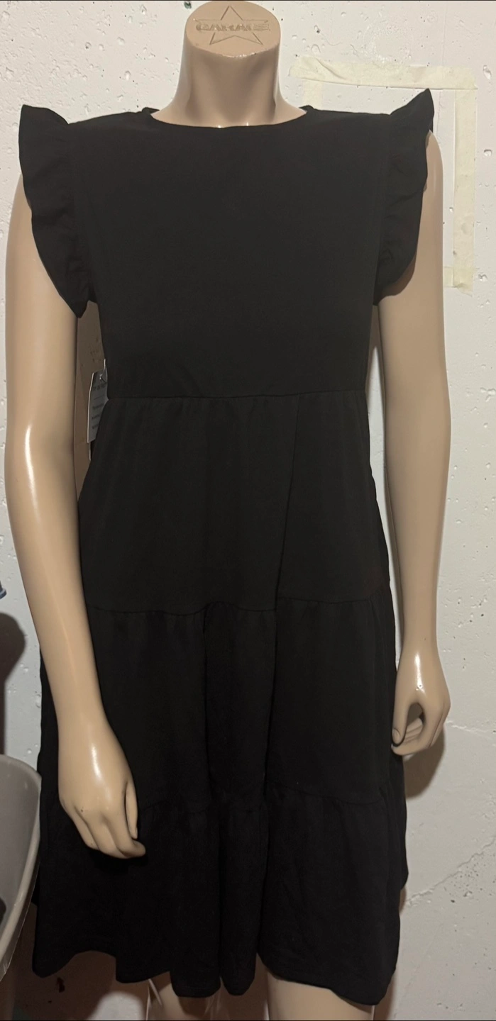 Brand new Small Lovely black dress. Sleeves are ruffle. Features a tiered skirt. A great everyday dress.