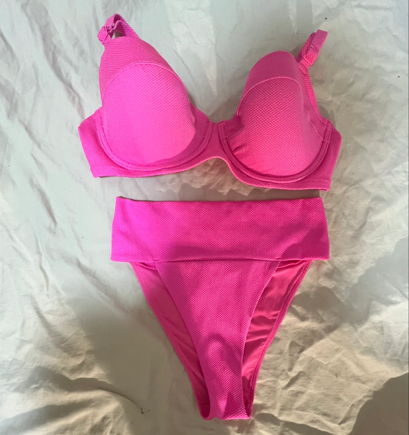 Top provides full support and bottoms are high waisted.Very flattering bikini.
