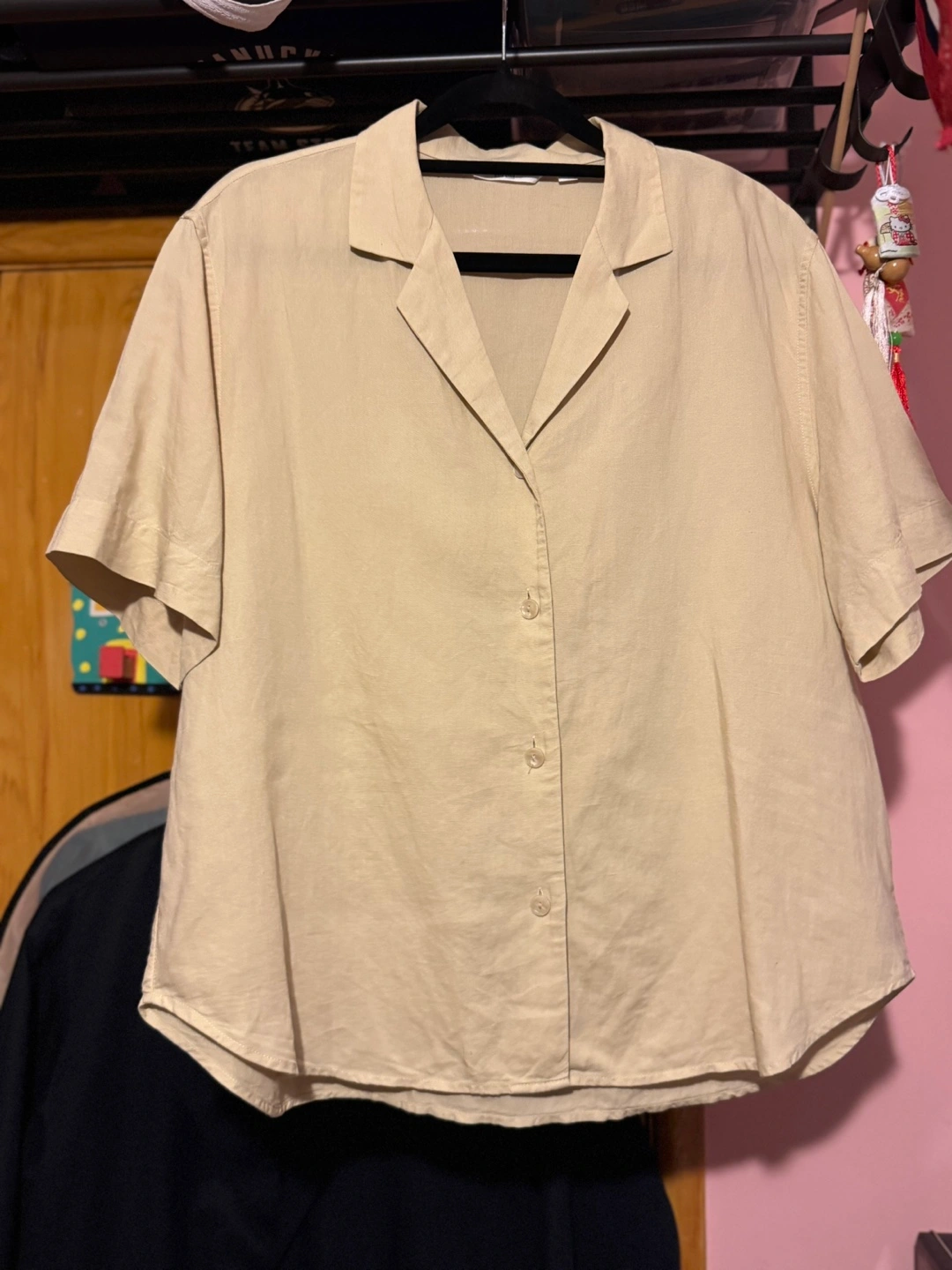 Summer is here! Keep cool with this light beige button-up shirt!