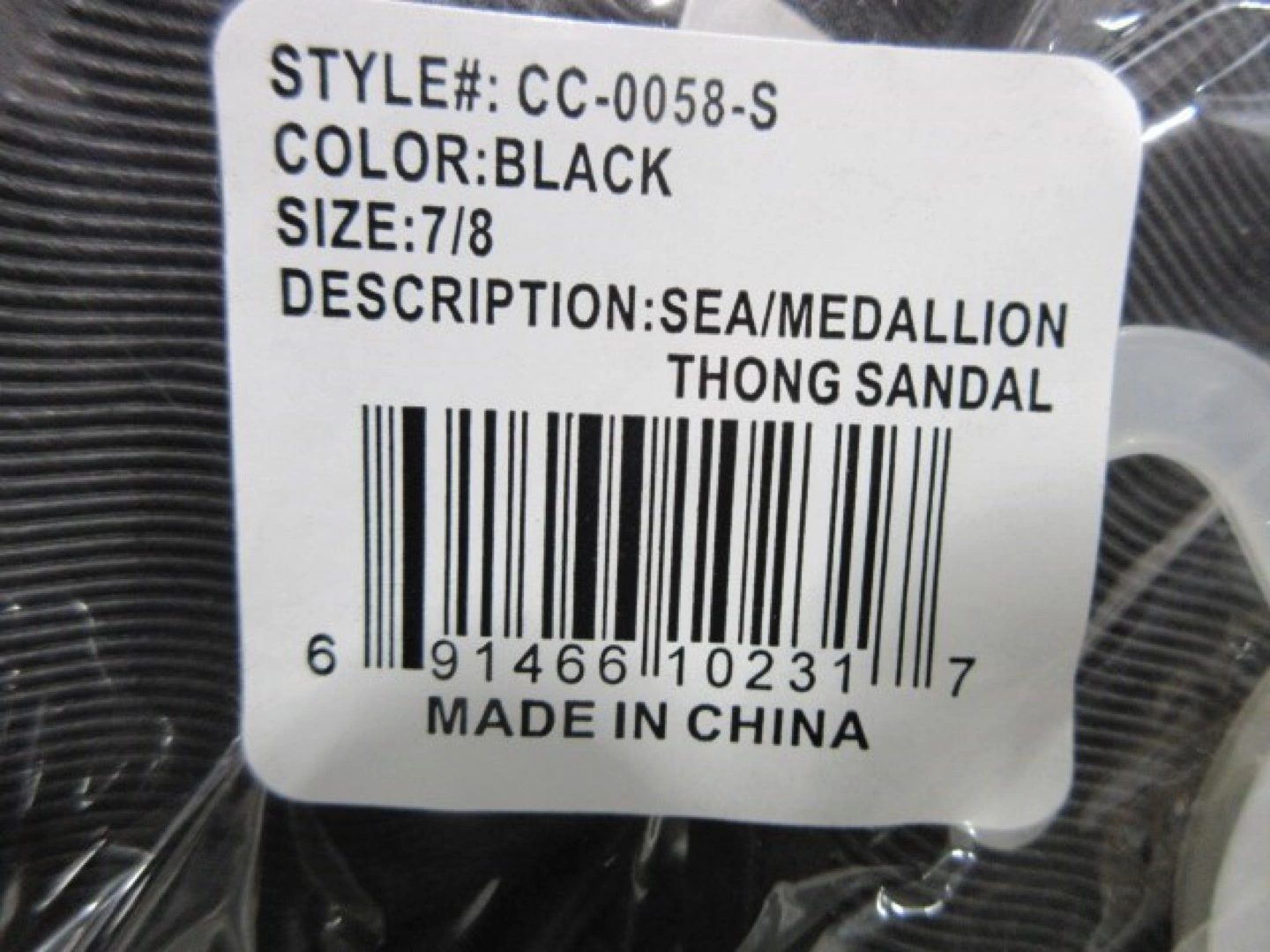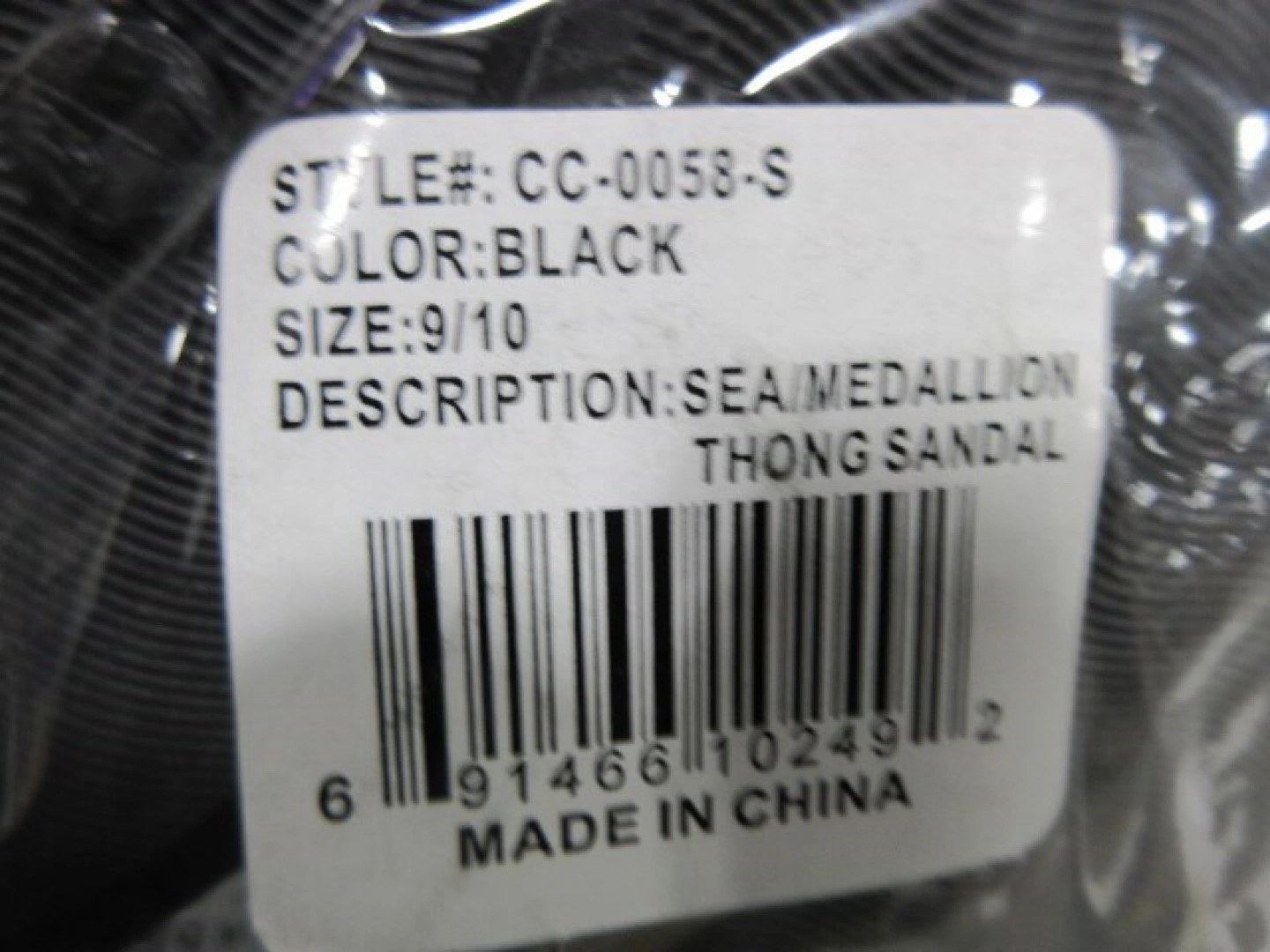Black sandals featuring a medallion detail. Perfect for a relaxing day at the beach, or pool. Various sizes available.