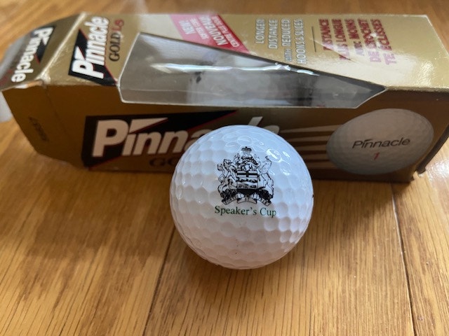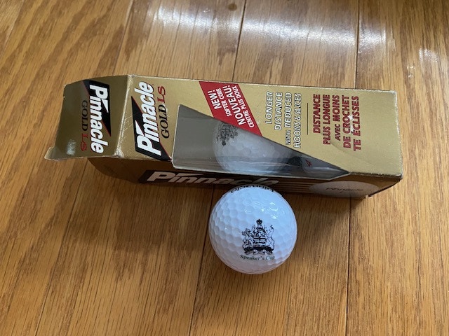 New, private logo collector golf balls featuring the Alberta Government Speakers Crest. Pinnacle brand, set of 3. $2.00 each.