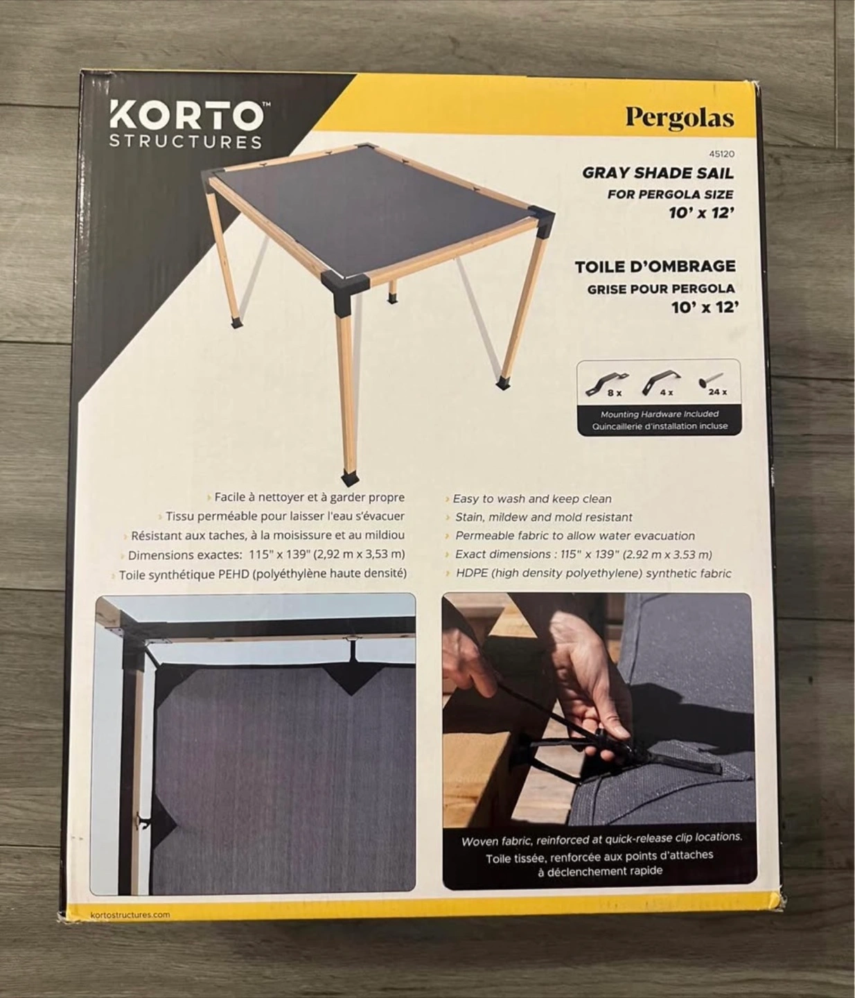 Korto Gray Shade Sail For Pergola 10' x 12'