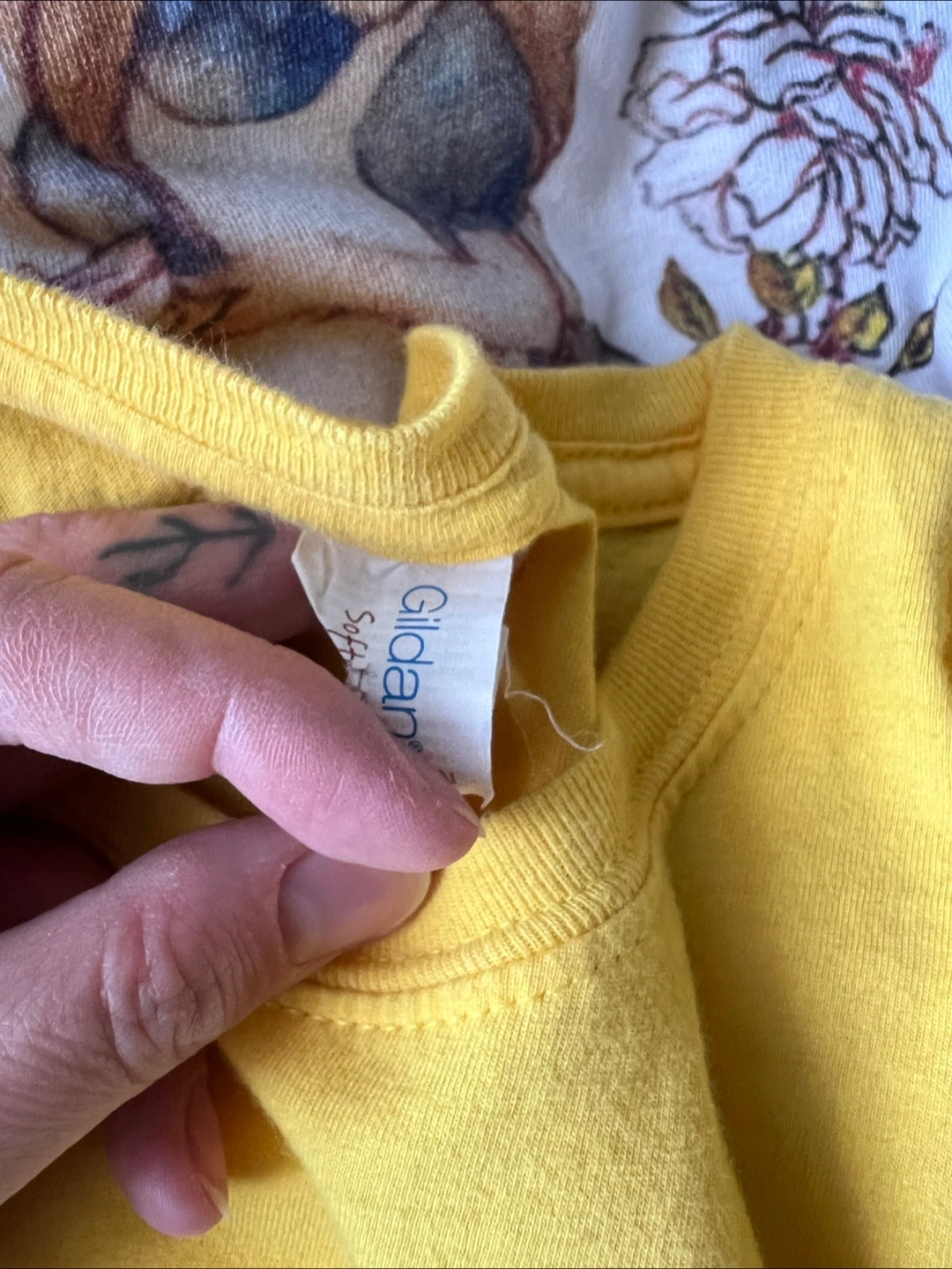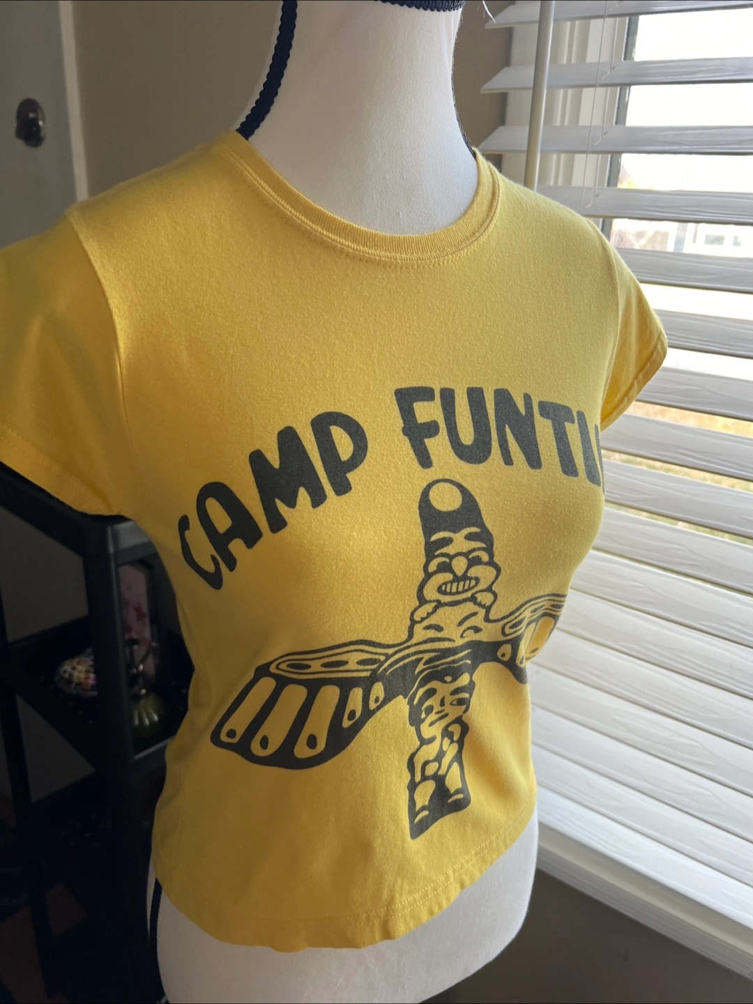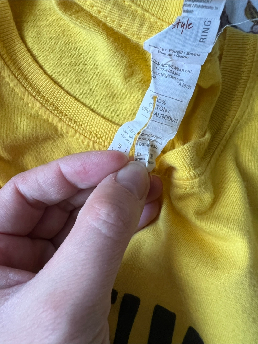A short-sleeved cropped t-shirt. Size S. Gildan Brand. 100% cotton