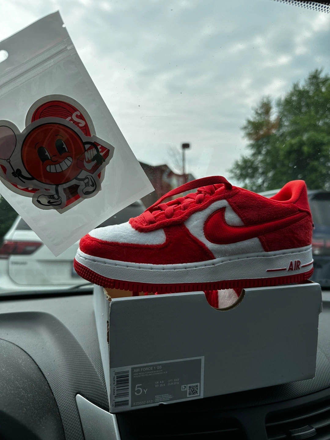 Valentine’s Day shoes 2023 Youth 5 which is women’s 7 Brand new with the stickers I wanna say no box cause the lid was ripped off :/ sorry but shoes are brand new and super pretty :) Pick up only