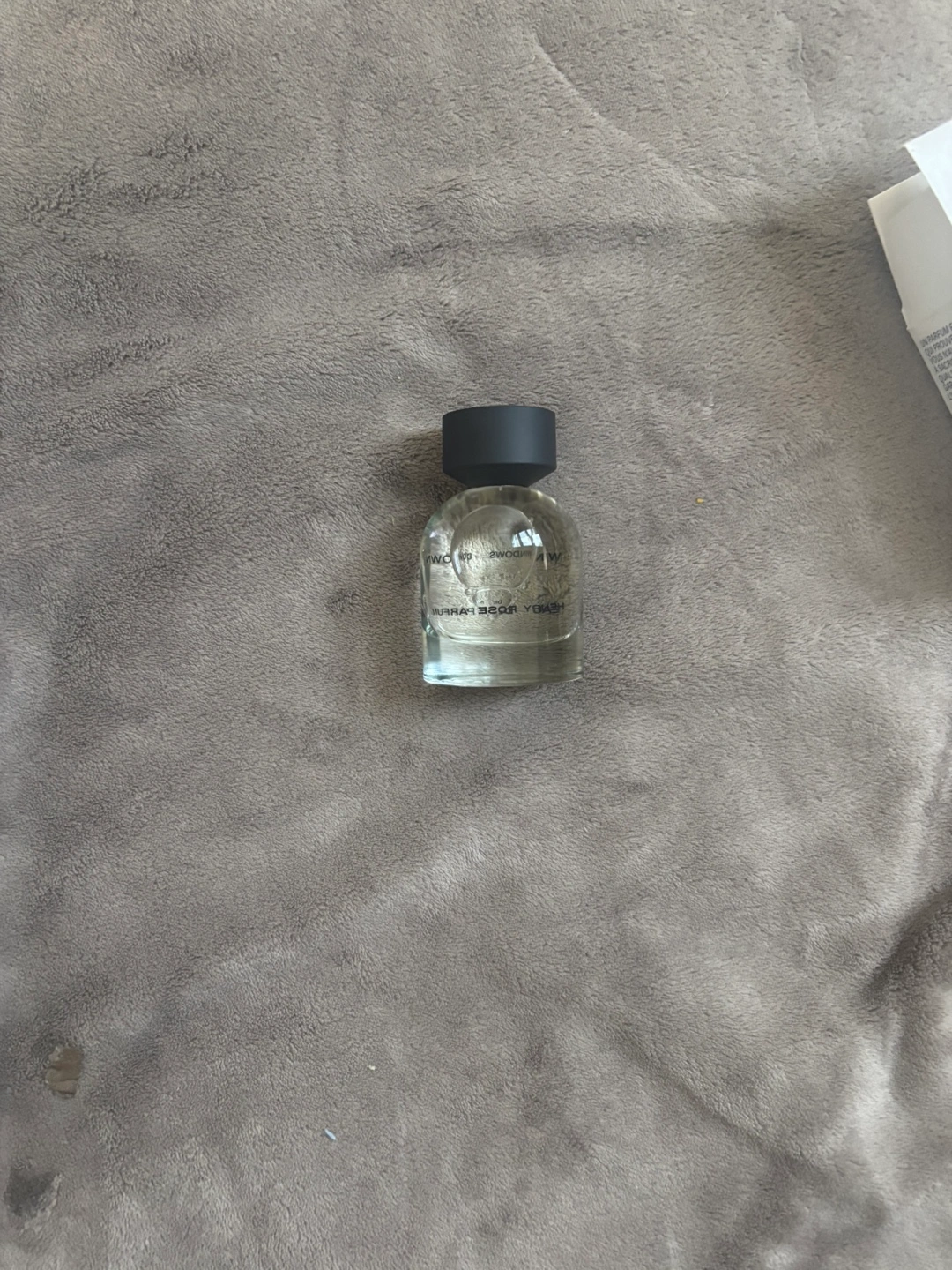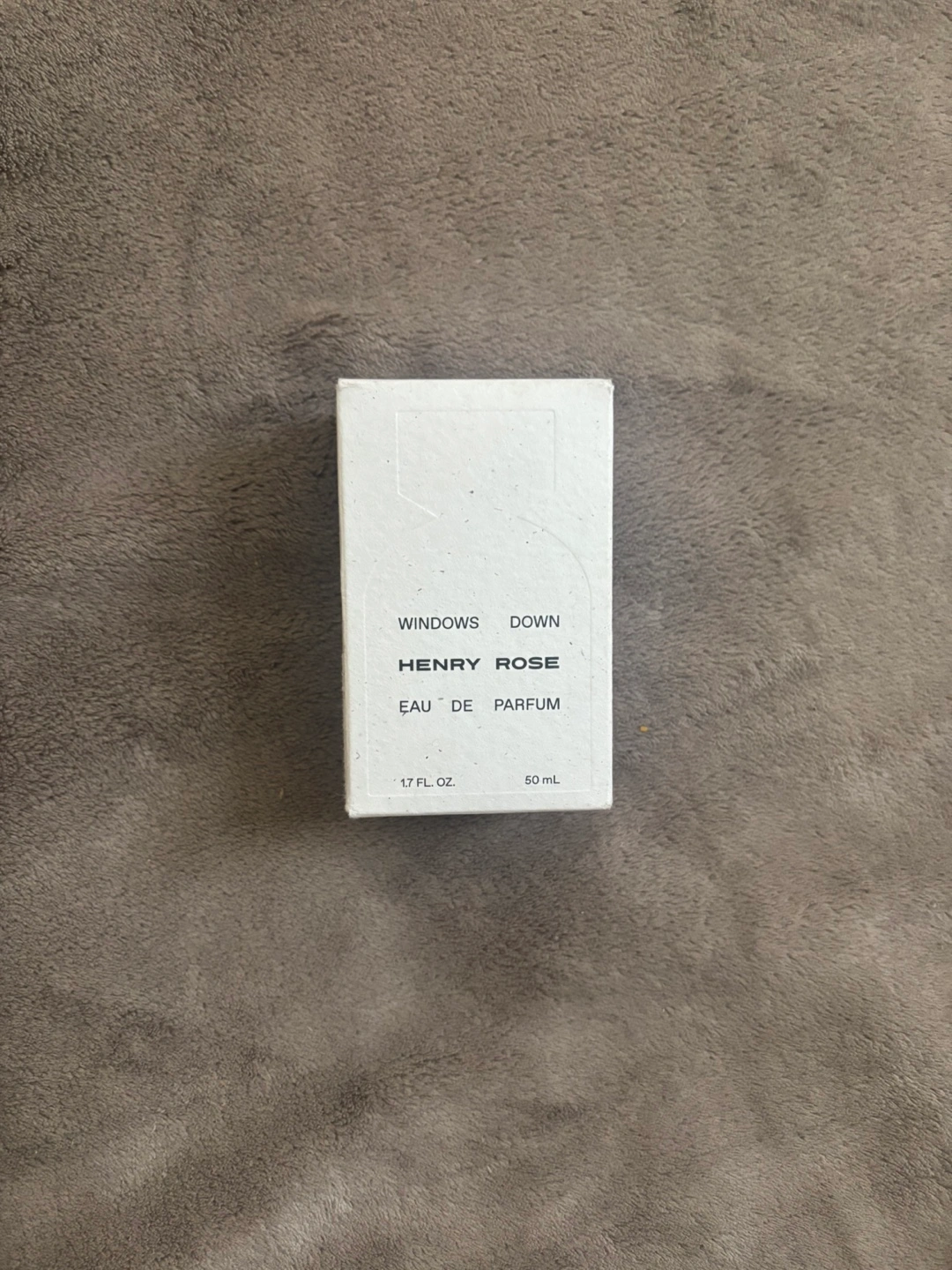 A bottle of perfume with a black cap. A white box with product information is included. The brand and product name is printed in black lettering. A perfect fragrance to help you unwind after a long day.