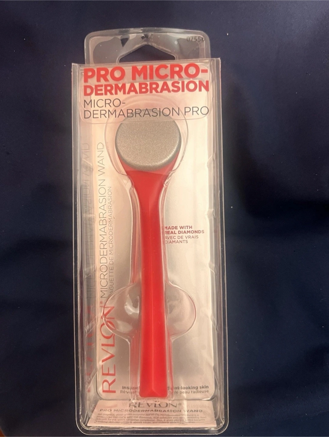A wand with a red handle and a gray tip. The item is still in its original packaging. Perfect for a spa-like experience at home. 2 available $20 each