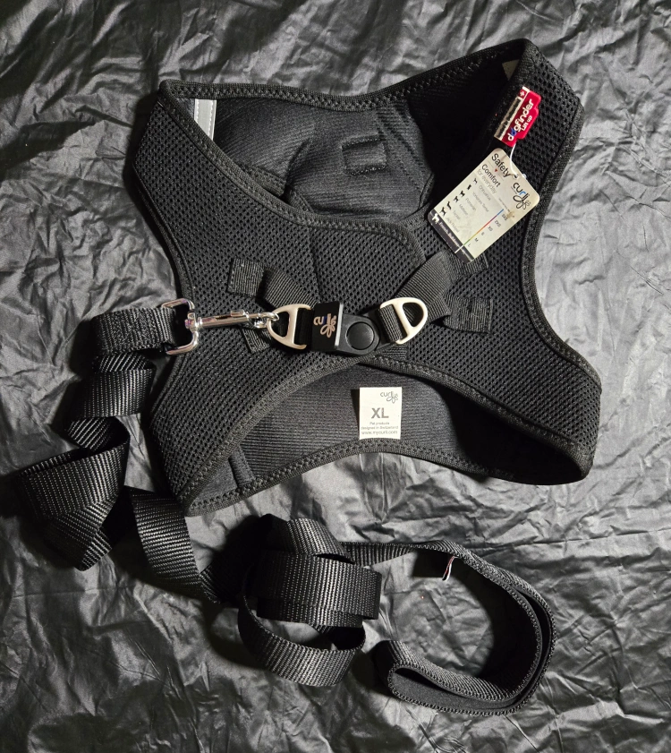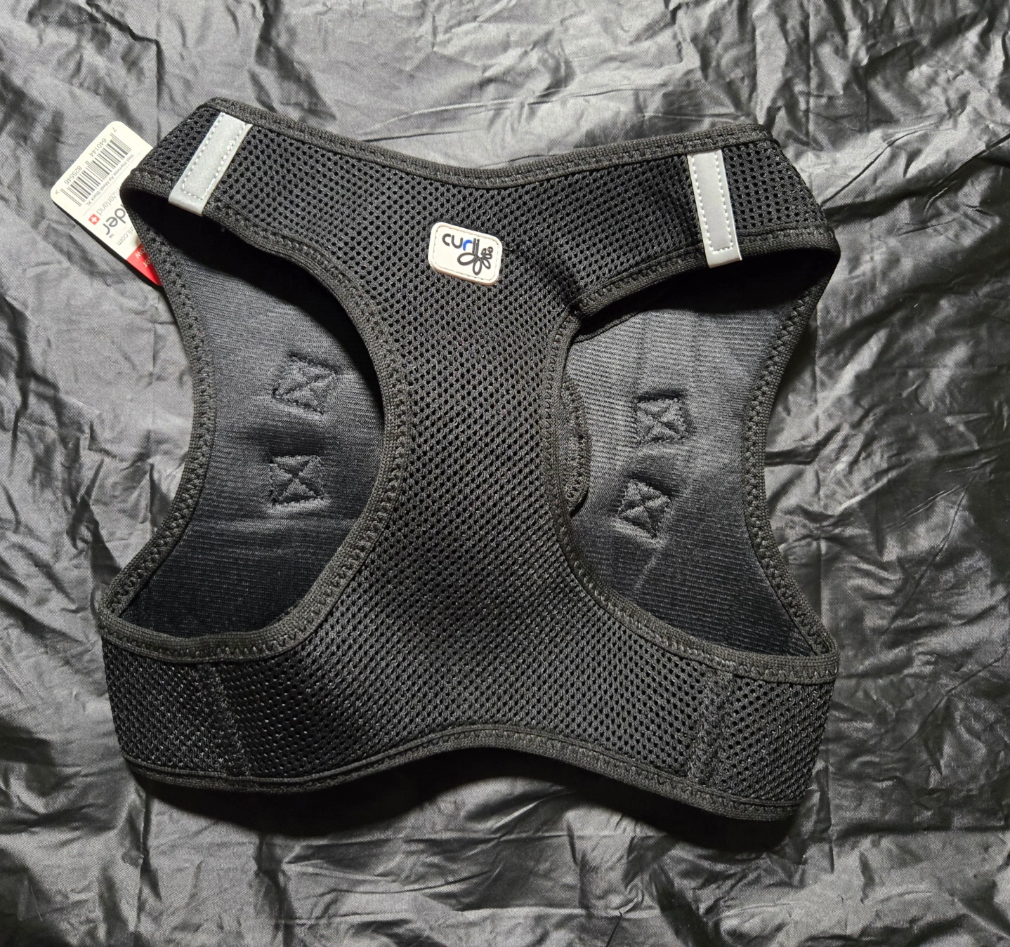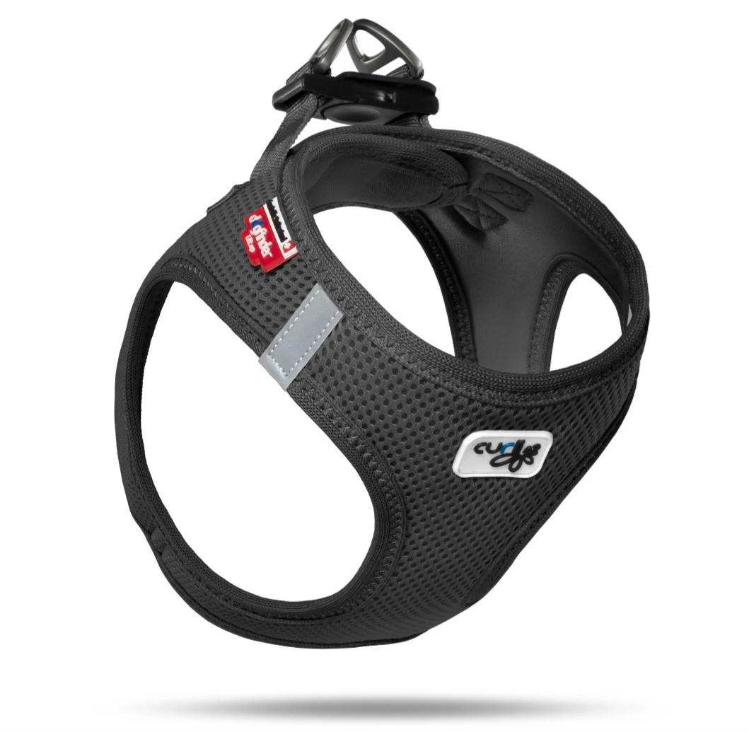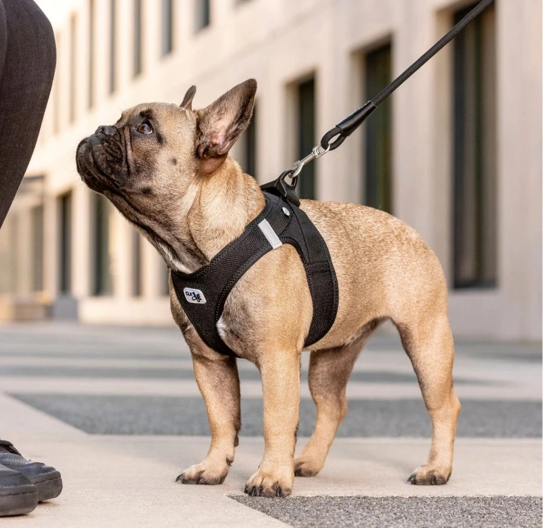 A dog harness made of mesh material. Offers comfort and safety. The harness comes with reflective strips. Perfect for a gentle stroll with your best friend.
