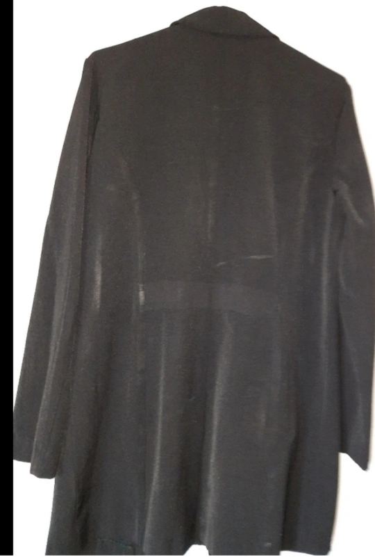 Black blazer. Features several buttons. Arm to arm 17"