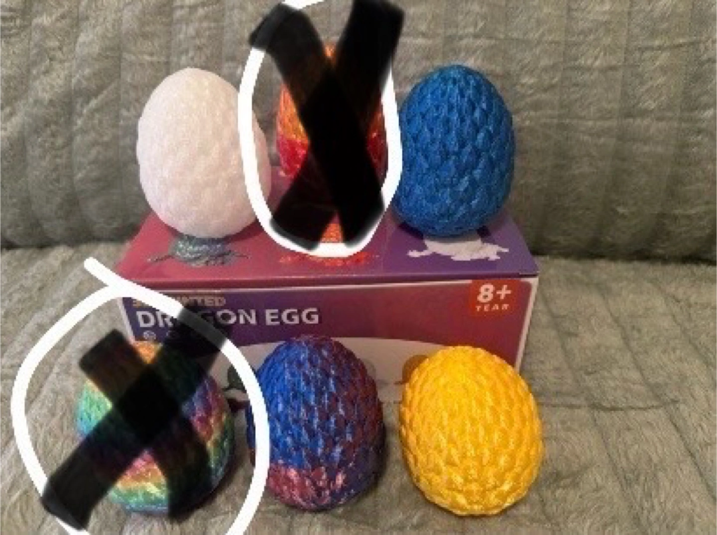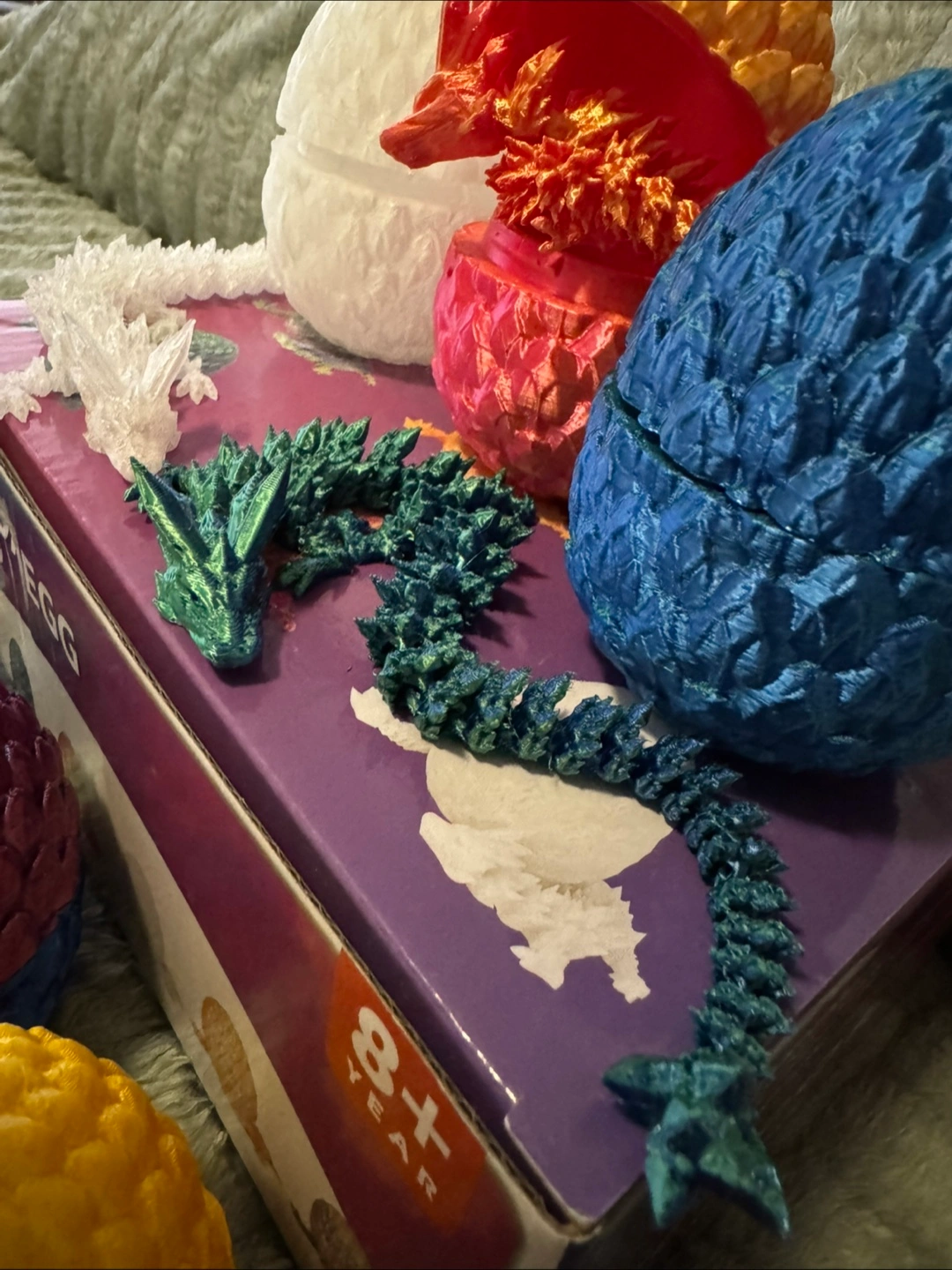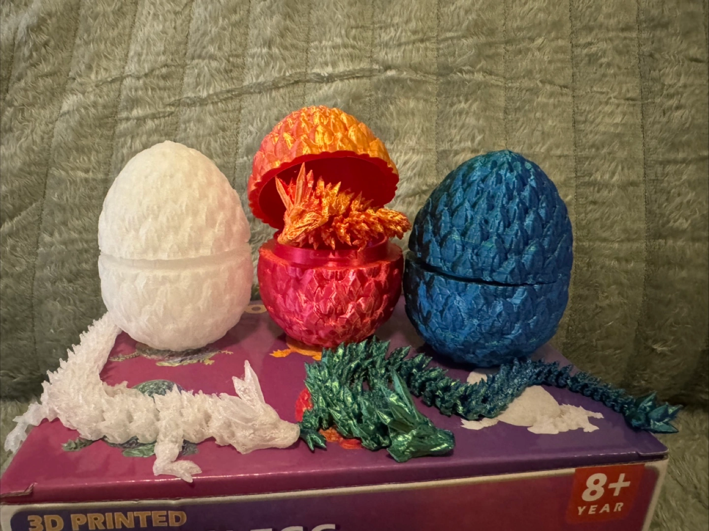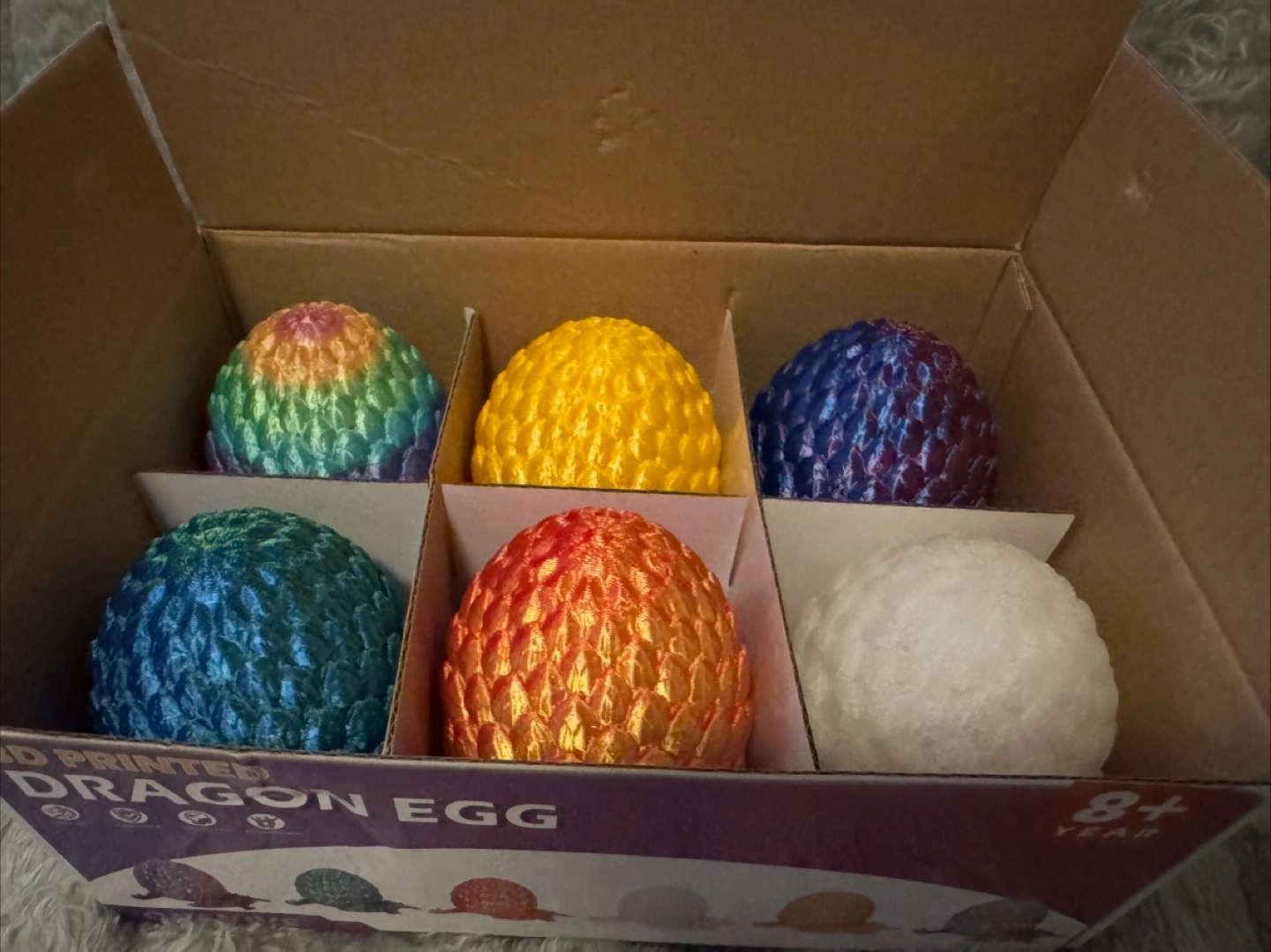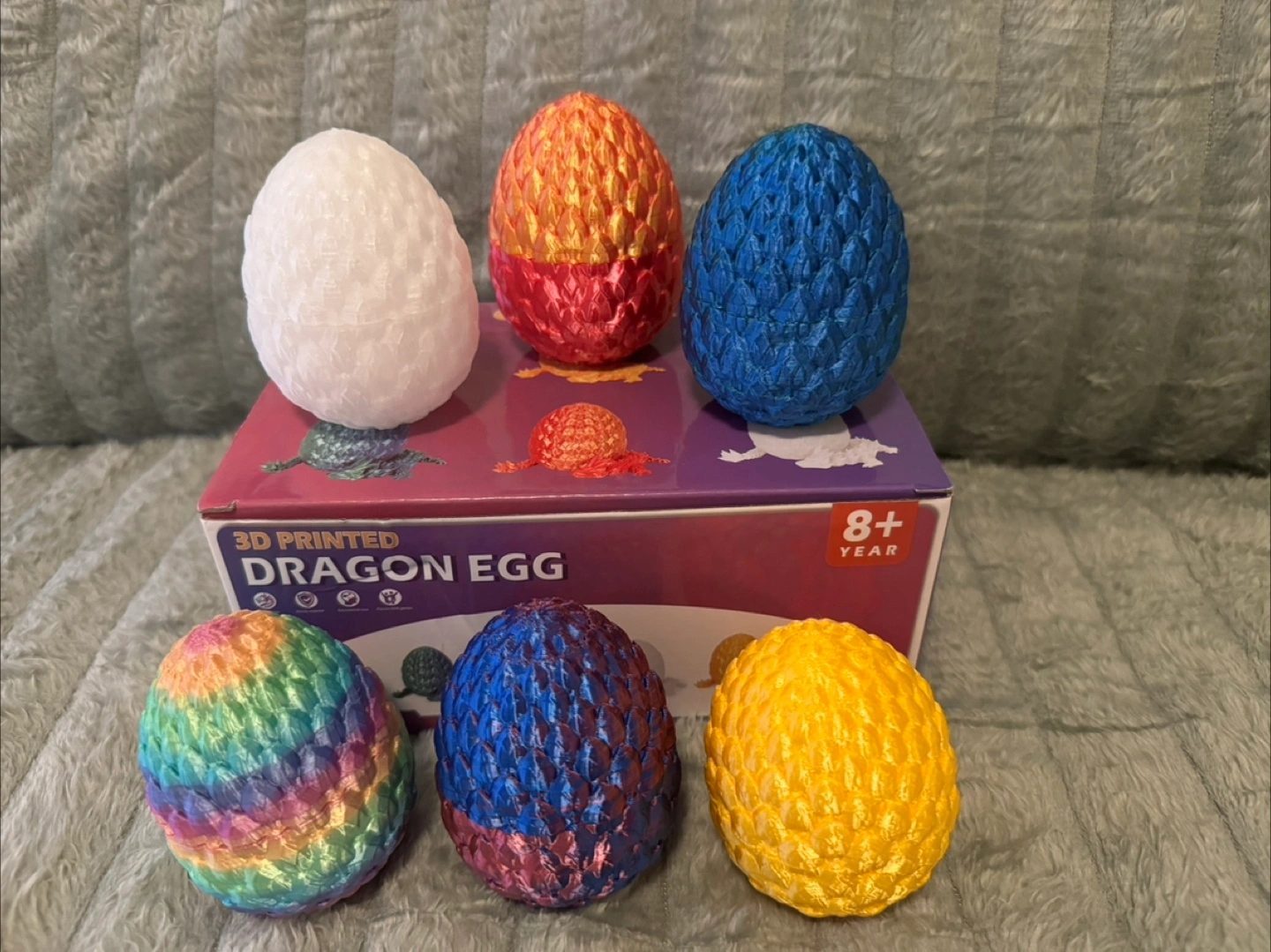 90This is a set of 3D-printed dragon eggs. Each egg is a unique colour. Each one $10 2 for $15 4 for $25