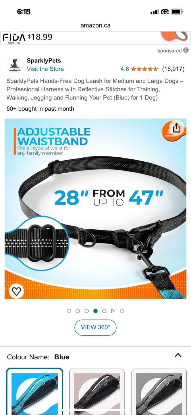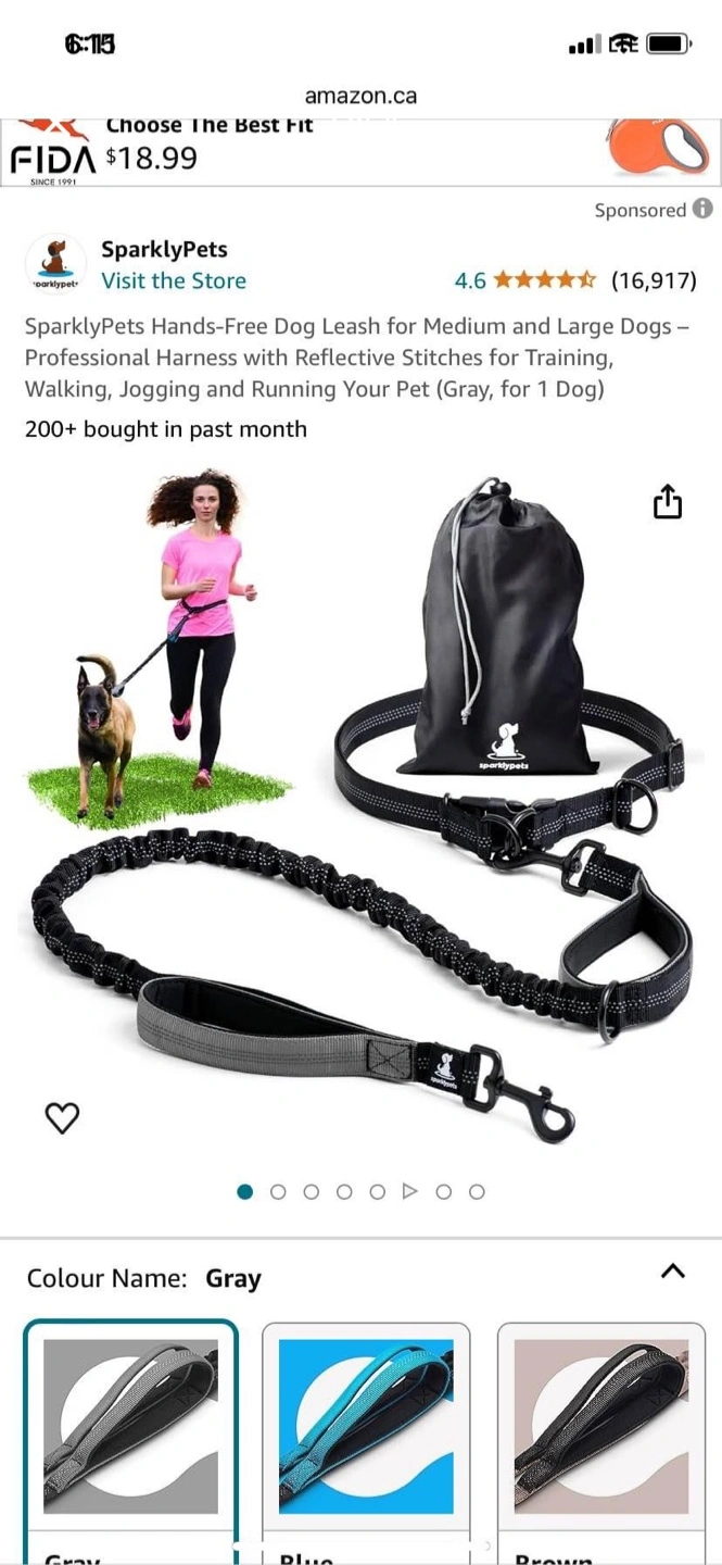 Comes with a black carrying bag. Hands-free dog leash. The leash is gray with a padded handle. Perfect for walks with your furry companion.