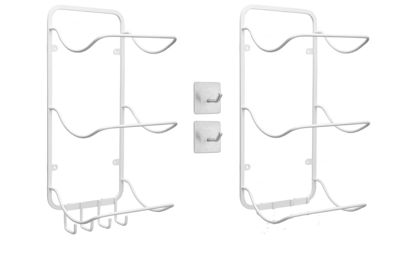 Our contoured design offers three curved shelves with four hook accessory attachment at the base. 6 shelves available as a twin pack.