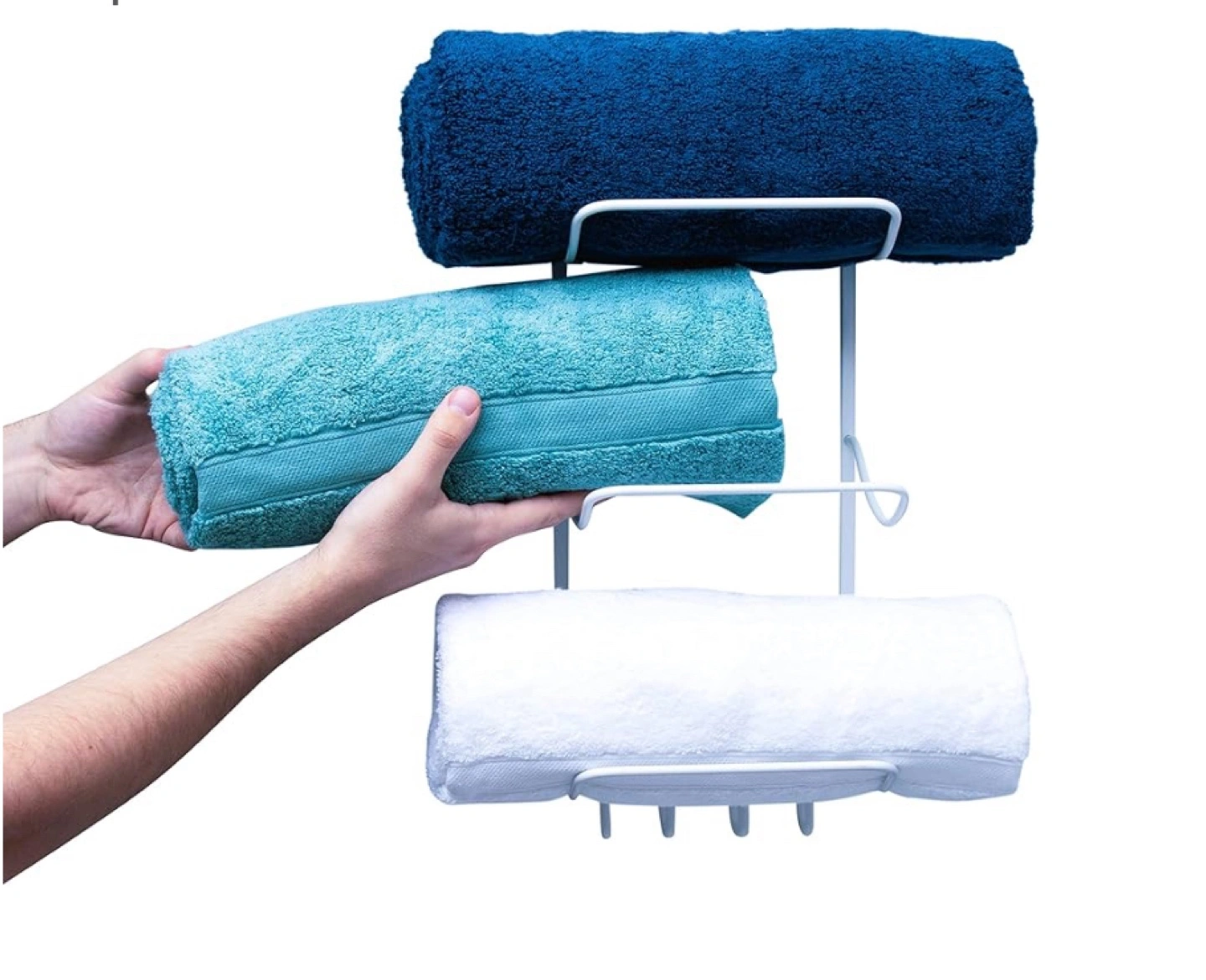 Comes complete with two self adhesive steel hooks for additional hanging space for your towels or garments.