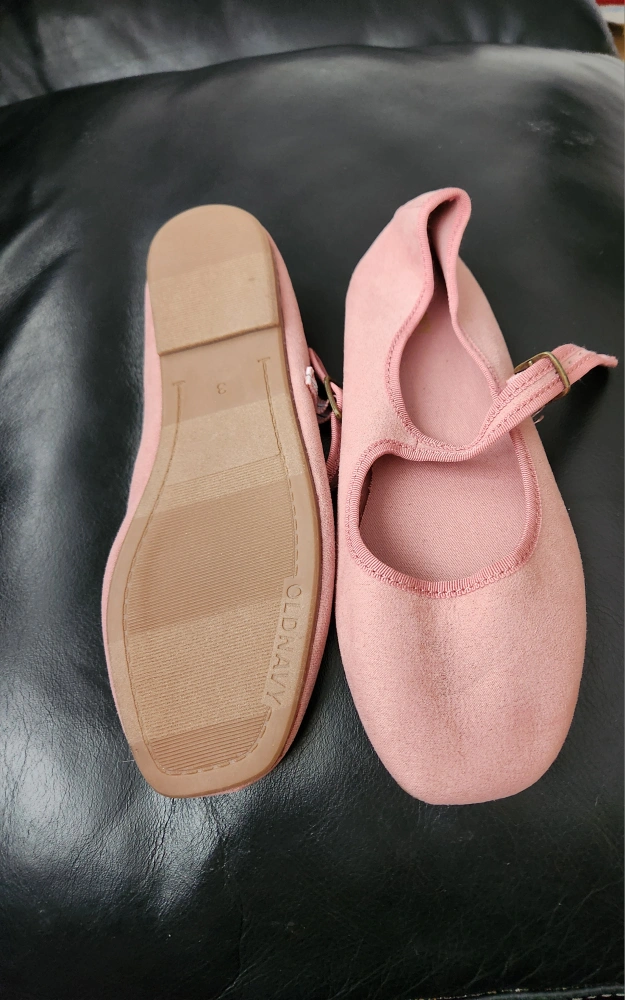 These are adorable pink Mary Jane flats.(Ballet class)They appear to be made of a soft, suede-like material, with adjustable straps. You can wear them for everyday activities, making your day pleasant.