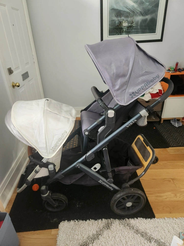 Selling my used 2017 UPPAbaby Vista stroller. I’s still in excellent shape. Everything works—brakes, wheels, folding mechanism. Fabric is clean, just some minor scuffs on the frame and wheels from normal use. Comes from a pet-free, smoke-free home.