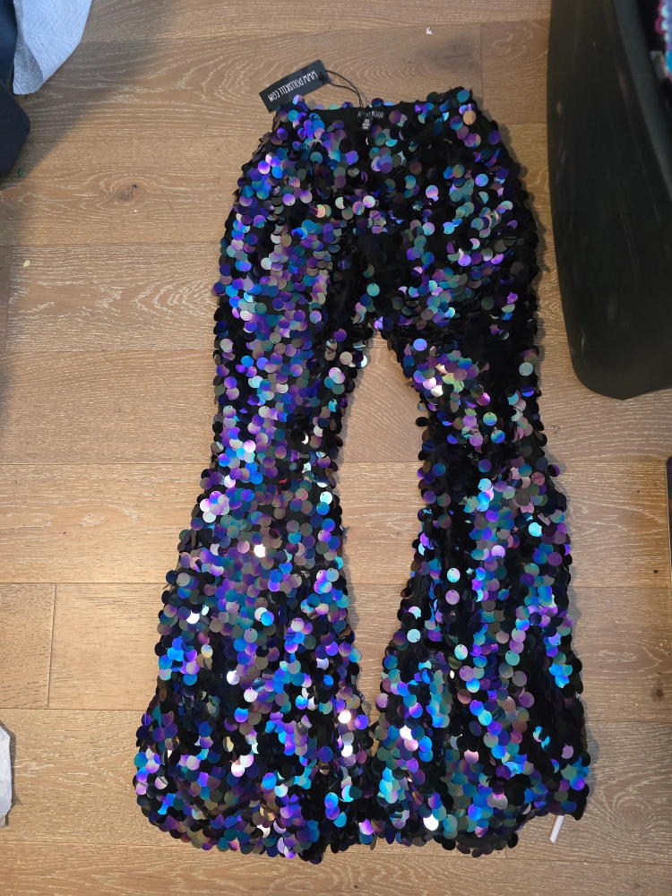 134Eye-catching sequin pants. Featuring an XS size with a flared leg. A great choice for your next special event, these pants will make you feel amazing.