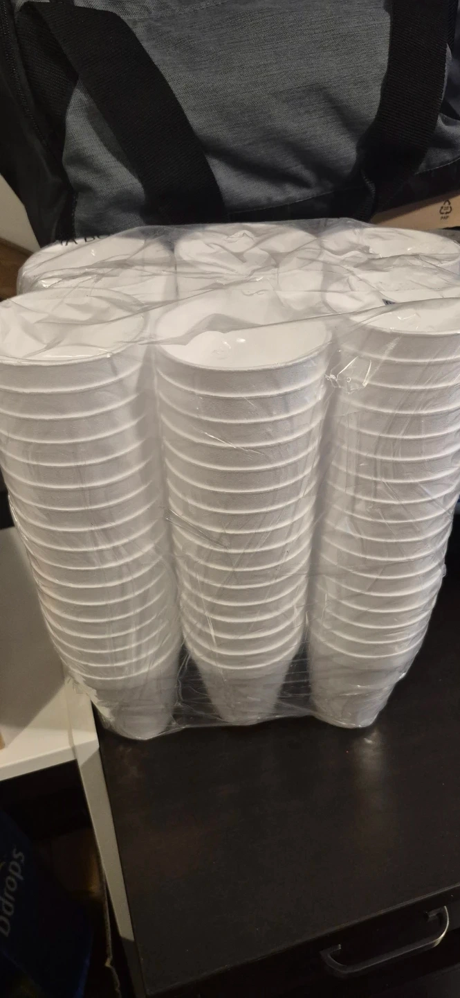 12oz disposable foam cups. There are 100 cups in the pack! These cups are great for hot and cold beverages like coffee, tea, hot cocoa, soup, broth, smoothie, soda, and juice. Originally bought for $55.99
