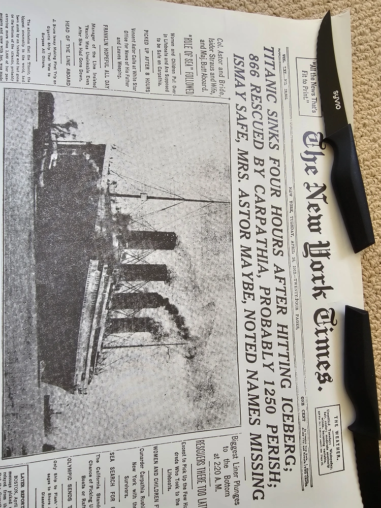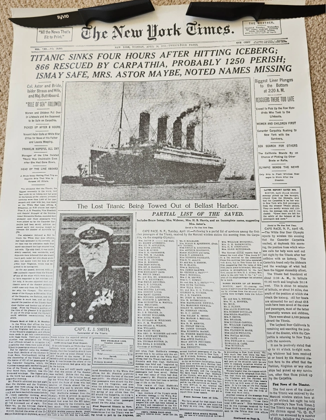 Old newspaper with headlines about the Titanic disaster. A perfect item for a history buff or someone who enjoys collecting vintage items.
