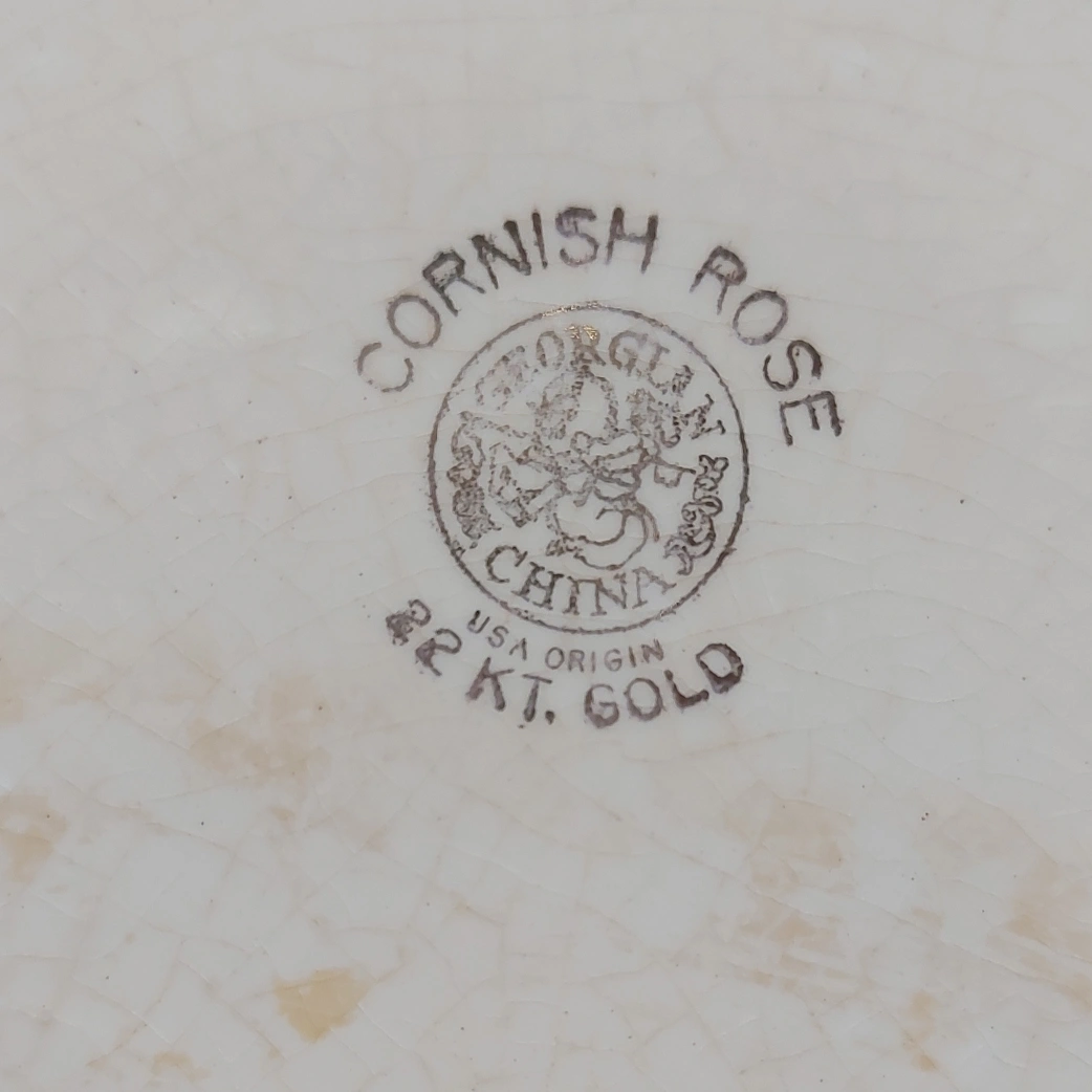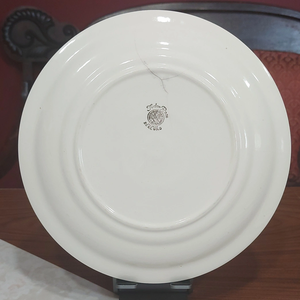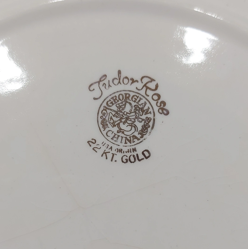 Vintage Georgian China Tudor Rose and Cornish Rose pattern 22 KT gold plates, set of three. In very good pre-owned condition and very clean. There is some crackling under the glaze layer on one of the plates, visible in photos. From a pet free and smoke free home