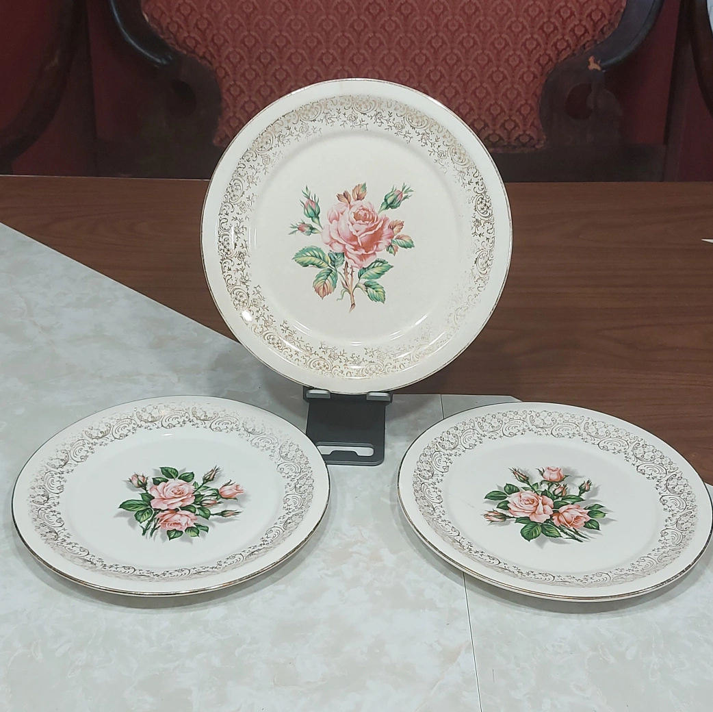 trade or $3 — rose pattern vintage plates