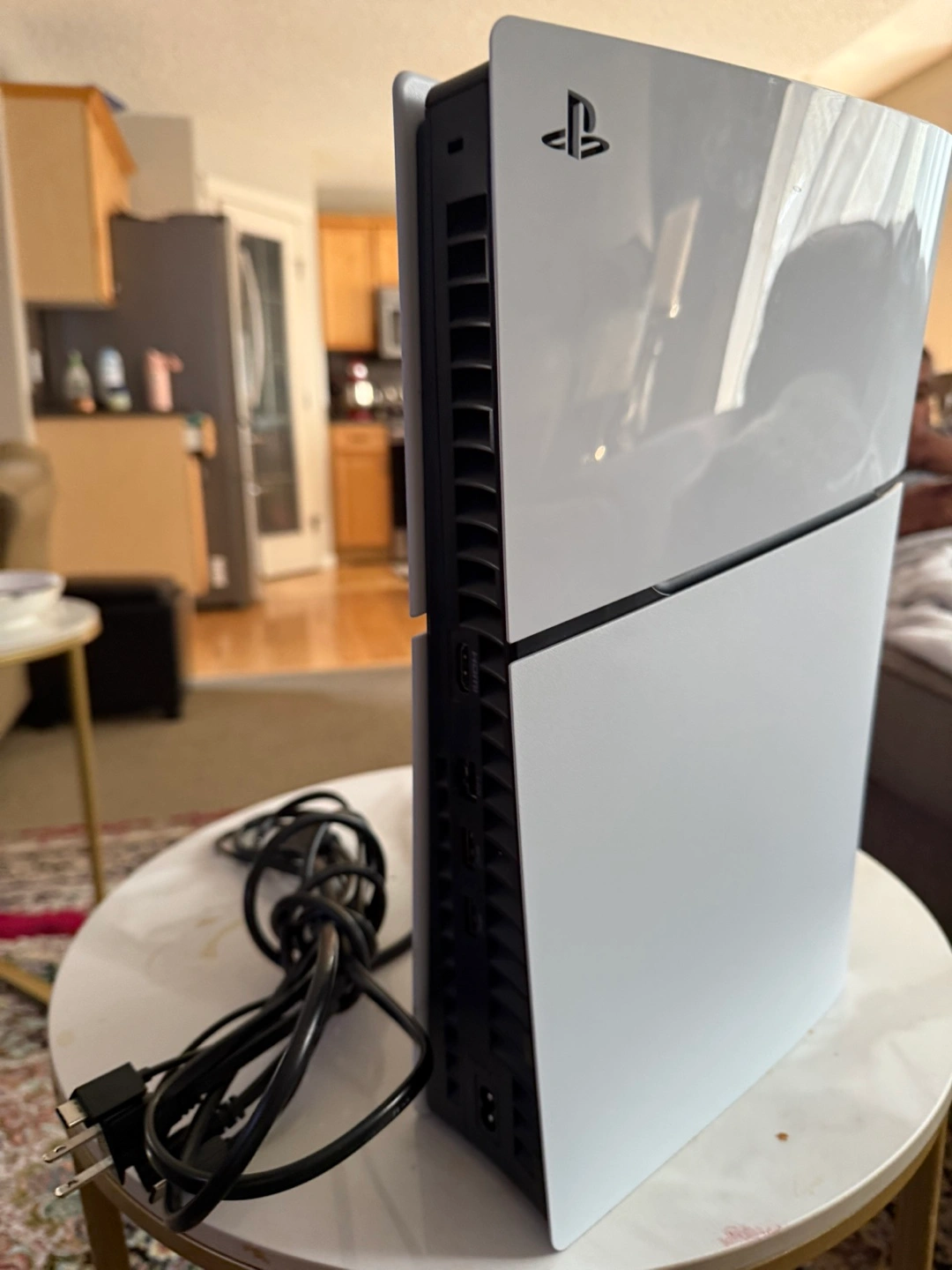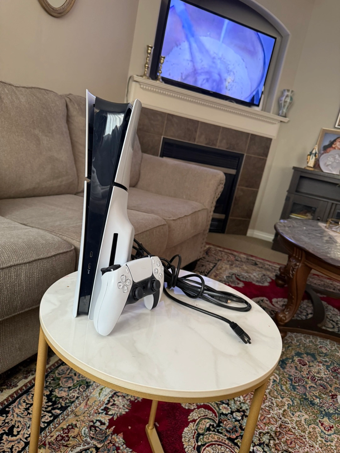 The console is in white, with a black side panel. It comes with the necessary cables and a controller. Consider getting lost in the world of gaming for hours on end.(No original box.)
