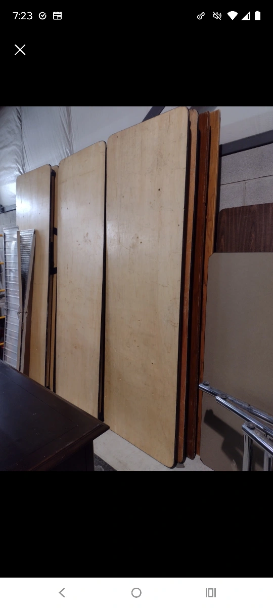 Wood folding banquet tables. Light wear. Good for events or other uses. 30" wide. $100 each plus HST. Pick up near Gage and Belmont in Kitchener Monday-Friday from 12-5.