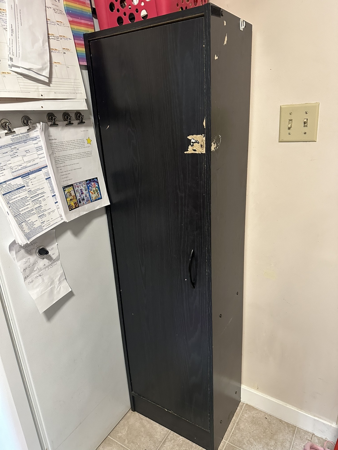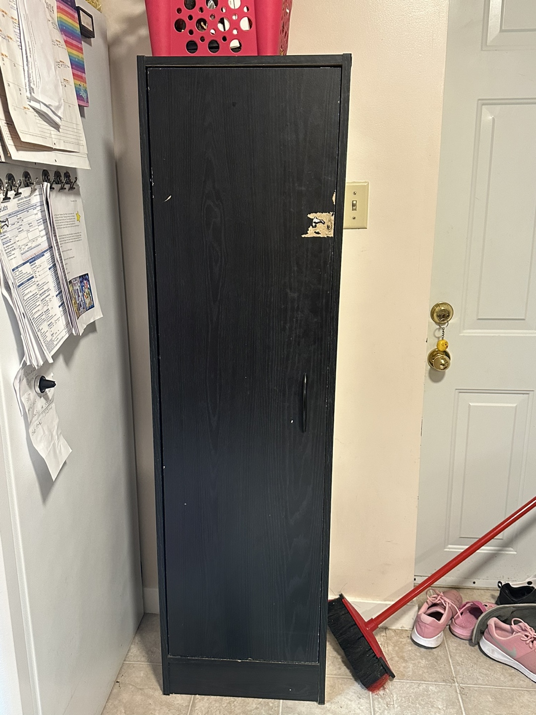 1 / 31 / 3Buy & SellBlack Wooden Storage CabinetBlack Wooden Storage CabinetFree5ft Tall, narrow black cabinet. Five shelves. Single door. Some minor cosmetic damage. Great for storage.WHERE TO MEET5626 Nanaimo StView MapSELLERShainaRenfrew Collingwood821 review1 chats·0 favorites·244 viewsSEND CHAT TO SELLERHi Shaina! I’m interested in your listing.Hi Shaina! I’m interested in your listing.Get the Karrot app to chatSign In to chat