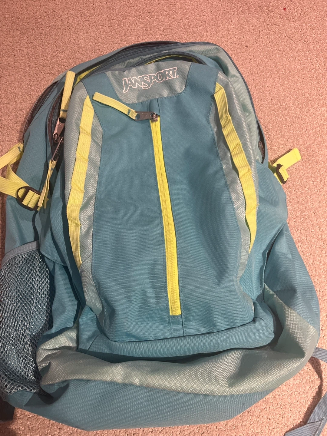 Buy & SellJansport Teal and Yellow BackpackJansport Teal and Yellow Backpack$20Jansport backpack with four pockets and water bottle holder. Light used.WHERE TO MEETCheck LocationView MapSELLERAnnalisaDanforth E York211 review0 chats·0 favorites·2 viewsSEND CHAT TO SELLERHi Annalisa! I’m interested in your listing.Hi Annalisa! I’m interested in your listing.Get the Karrot app to chatSign In to chat