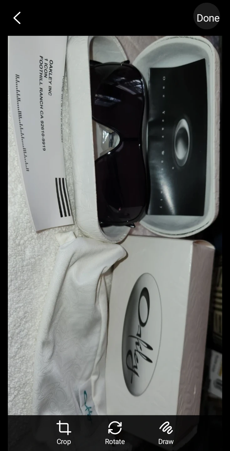 New .These Oakley ICON sunglasses come with their original case, a cleaning cloth, and the box. The lenses are dark and offer good coverage. A warranty card is also included.