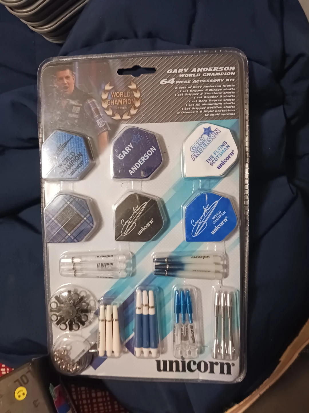 Selling a Unicorn Gary Anderson World Champion 64-piece accessory kit for darts! It includes: