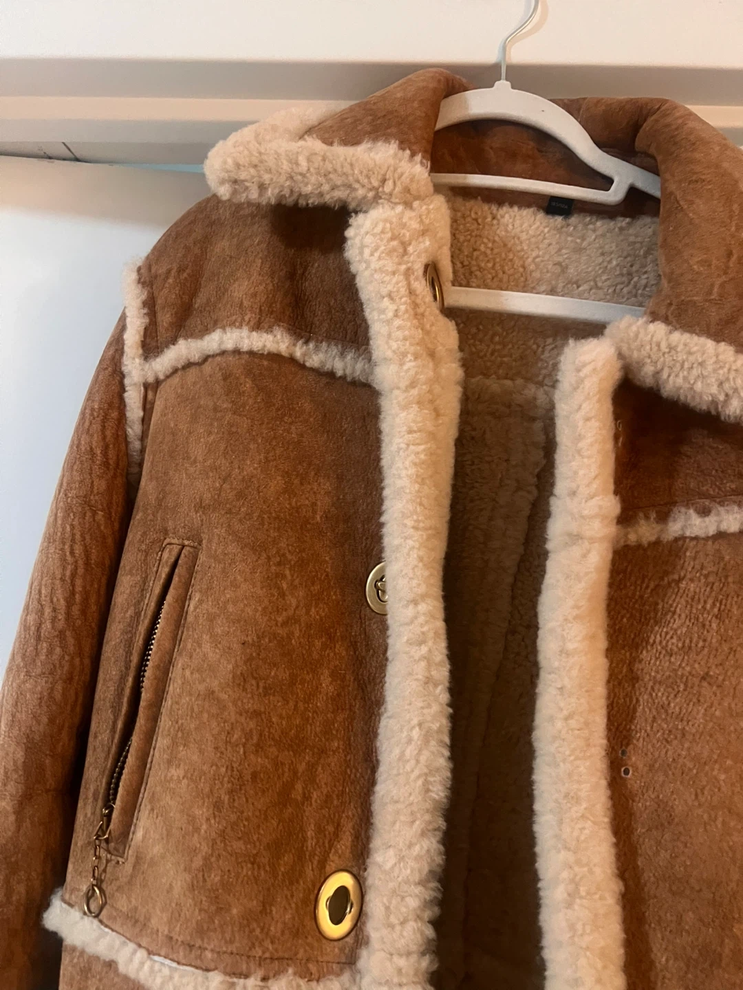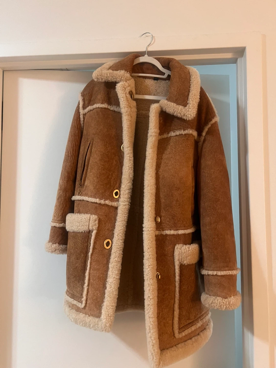 Selling a coach shearling coat in a beautiful brown color. It’s extremely thick and warm, The coat features a soft shearling lining and the comfortable fitted silhouette. Second turn lock is missing one side of the button (needs to be replaced), third turn lock has both sides’ pieces but needs to be reattached. Originally retails for over $2k, open to offers. Fits small to medium.