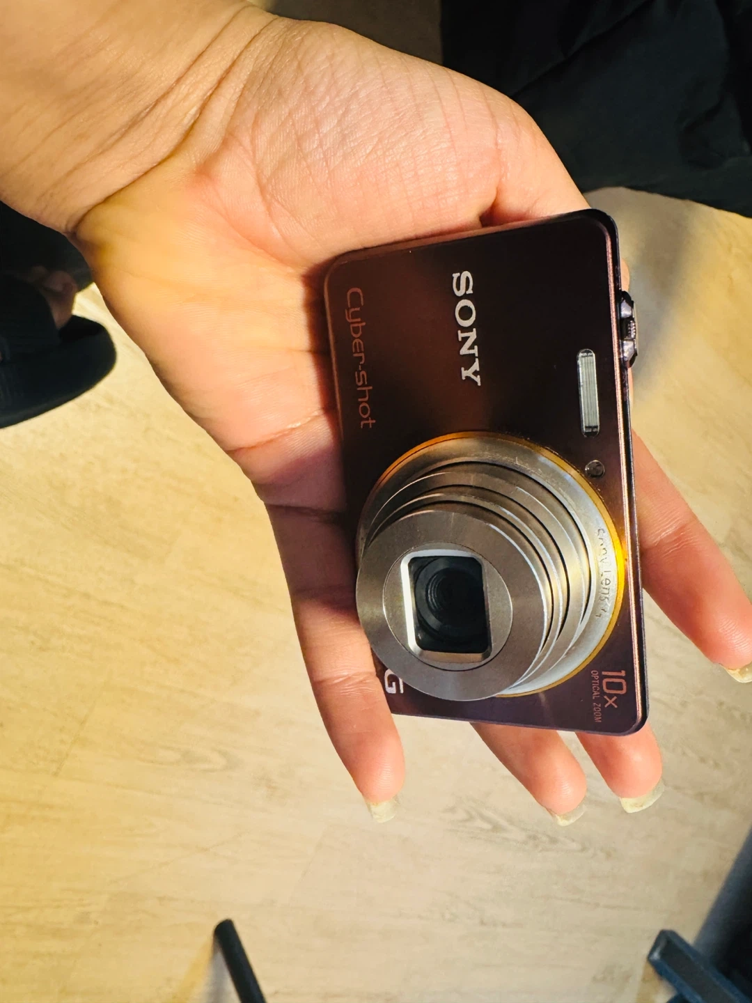 This is a Sony Cyber-shot digital camera. It has 18.2 megapixels and 10x optical zoom. The camera records in HD AVCHD.