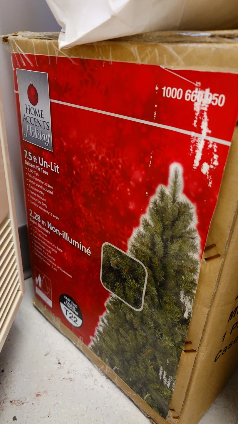 This is a 7.5 ft Balsam Fir artificial Christmas tree. It's 2.28 m non-illuminated and has 1,000 tips. The tree comes with easy setup instructions. It's perfect for bringing festive cheer to your home during the holidays!
