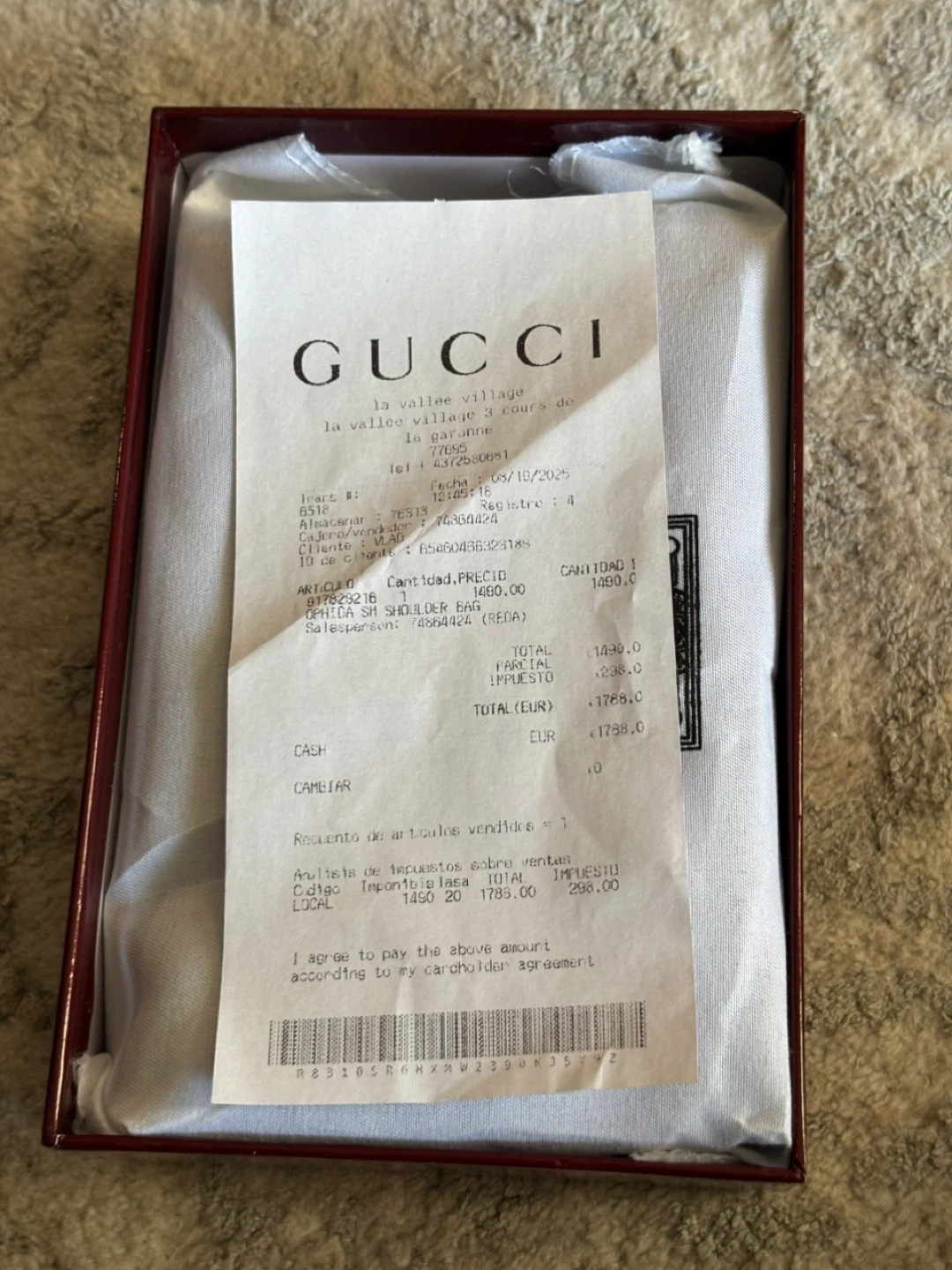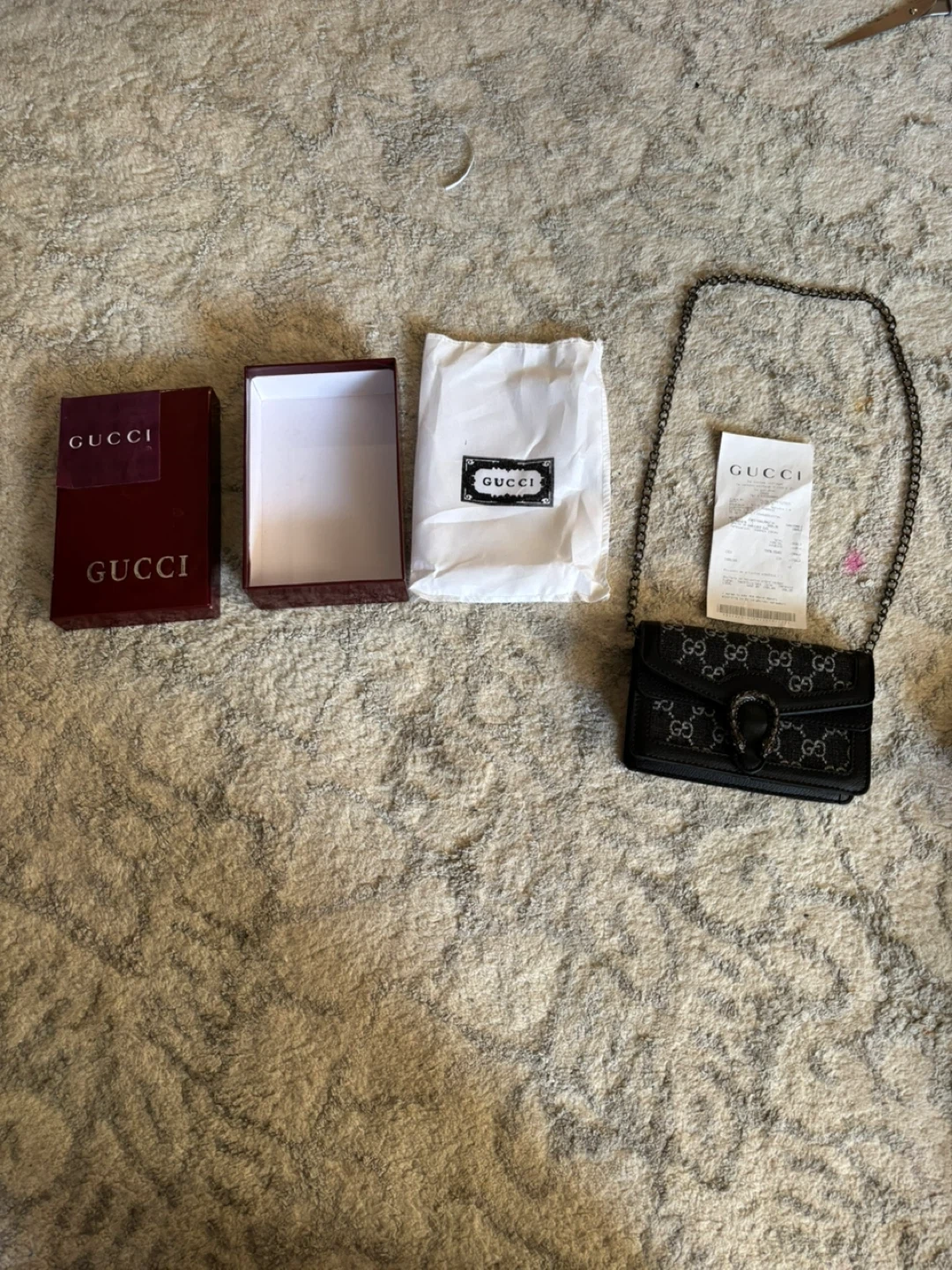 Authentic Gucci small shoulder bag in black with signature GG pattern and silver-toned hardware. Comes with original box, dust bag, and receipt. Purchased on 05/10/2025.