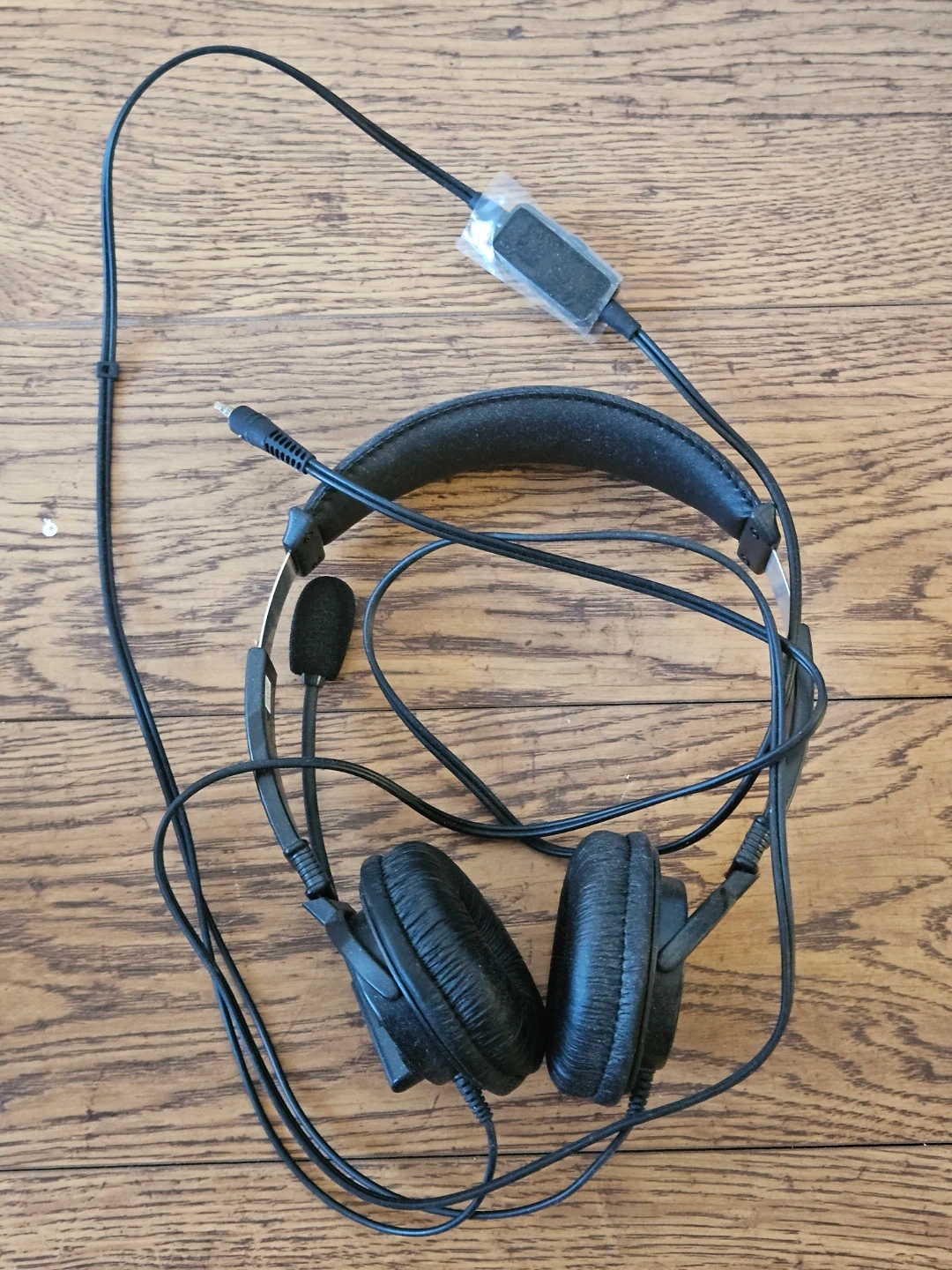Selling a pair of black wired headphones. They come with a microphone, perfect for calls or gaming. In good condition!