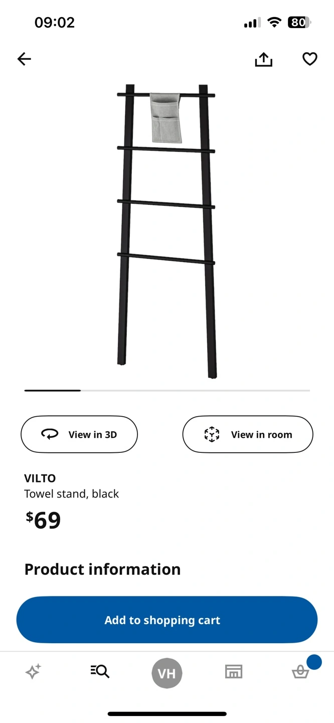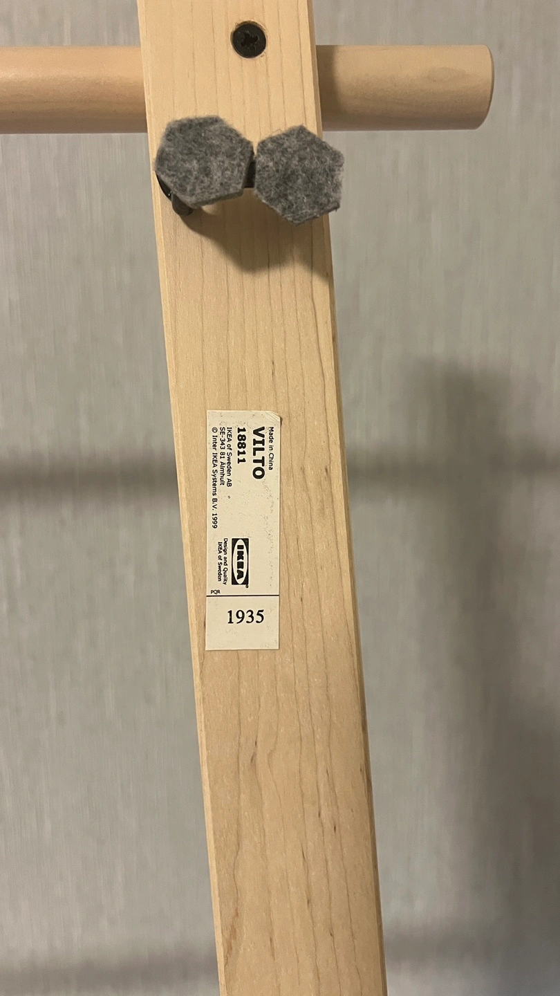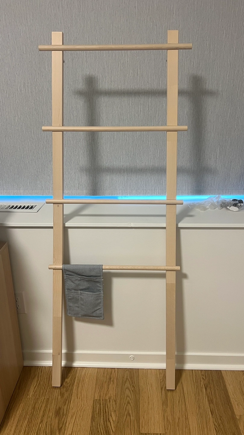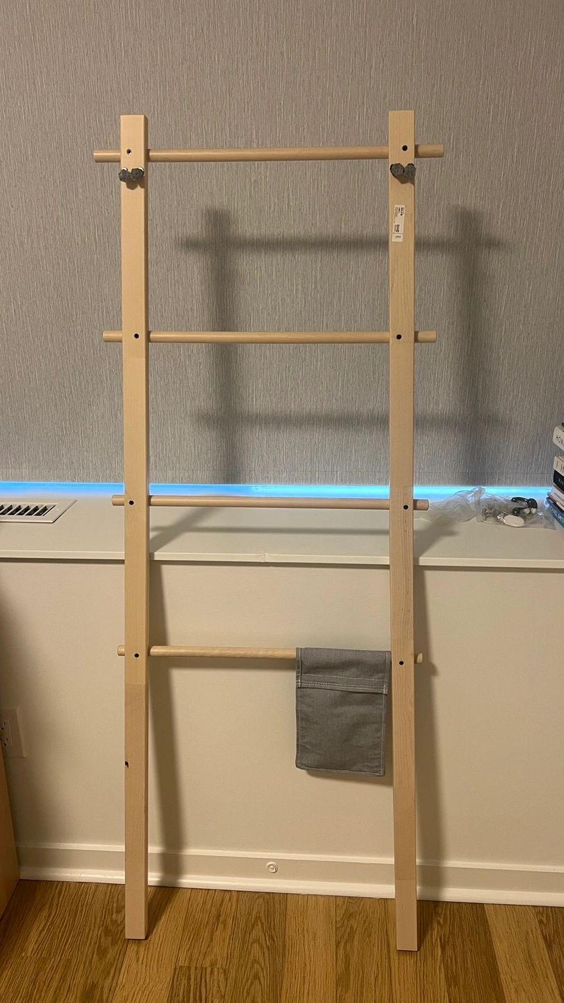 Freestanding towel stand. Four horizontal bars. Light wood finish. Minimalist design. Excellent condition.